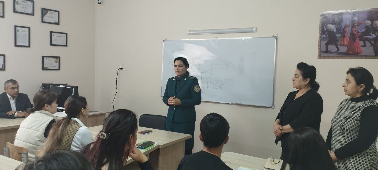 Unda Urganch shahri IIO FMB HPB xotin-qizlar masalalari bo'yicha inspektor, kapitan Z.Tillabayeva mehmon bo’lib, mavzu yuzasidan talaba-yoshlar bilan suhbat olib bordi. Shuningdek uchrashuvda filialning xotin-qizlar masalalari bo‘yicha direktor o‘rinbosari B.Sapayeva hamda fakultet dekani M.Amanbayevalar so‘zga chiqib soʻnggi yillarda mamlakatimizda xotin-qizlar masalasi, ularning turmush sharoitlarini yaxshilash, maishiy hayotdagi muammolarini hal qilish, iqtidori va imkoniyatlarini koʻrsatish uchun amalga oshirilayotgan oʻzgarishlar haqida gapirishdi.