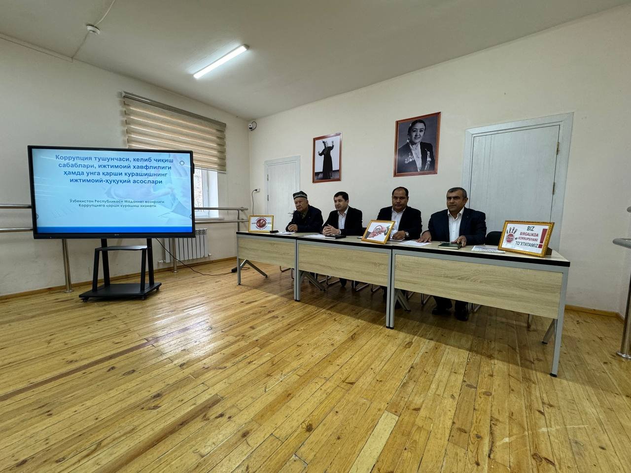 Tadbirda Jinoyat ishlari bo‘yicha Xorazm viloyati sudining sudyasi Akbar Aminov, Xorazm viloyati korrupsiyaga qarshi kurashish hududiy kengashi mas’ul xodimi Polvon Ro‘ziboyev, Oliy ta’lim fan va innovatsiyalar vazirligi Xorazm viloyati hududiy boshqarmasi Korrupsiyaga qarshi kurashish bo‘limi bosh mutaxassisi Botir Qobulov, Toshkent davlat yuridik universiteti Biznes huquqi kafedrasi katta o‘qituvchisi Kamola Botirova, Xorazm viloyati Adliya boshqarmasi Huquqiy axborot sho‘basi bosh maslahatchisi Zuhra Begovalar hamda Toshkent davlat yuridik universiteti talabalari ishtirok etishdi.