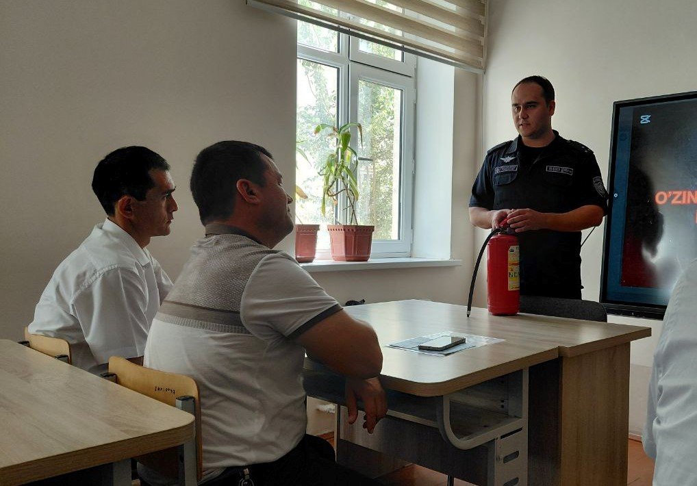 FVB xodimi, katta leytenant Anvar Rajabov yong‘inga qarshi vositalardan foydalanish bo‘yicha ko‘rsatmalar berib, kundalik hayotda e’tibor qaratilishi zarur bo‘lgan xavfsizlik choralarini ham eslatib o‘tdi.
