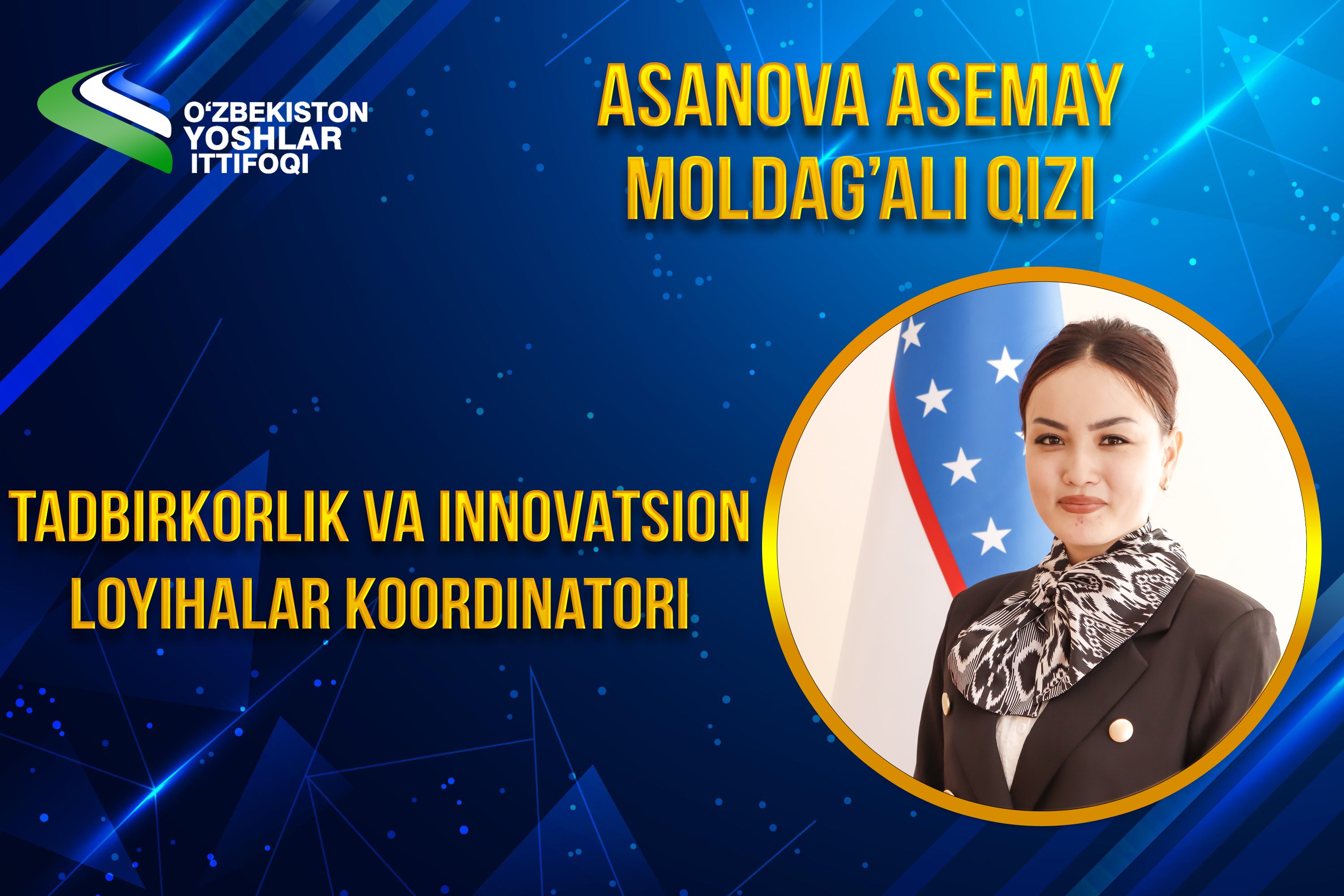 Asanova Asemay Moldag‘ali qizi - Tadbirkorlik va innovatsion loyihalar koordinatori