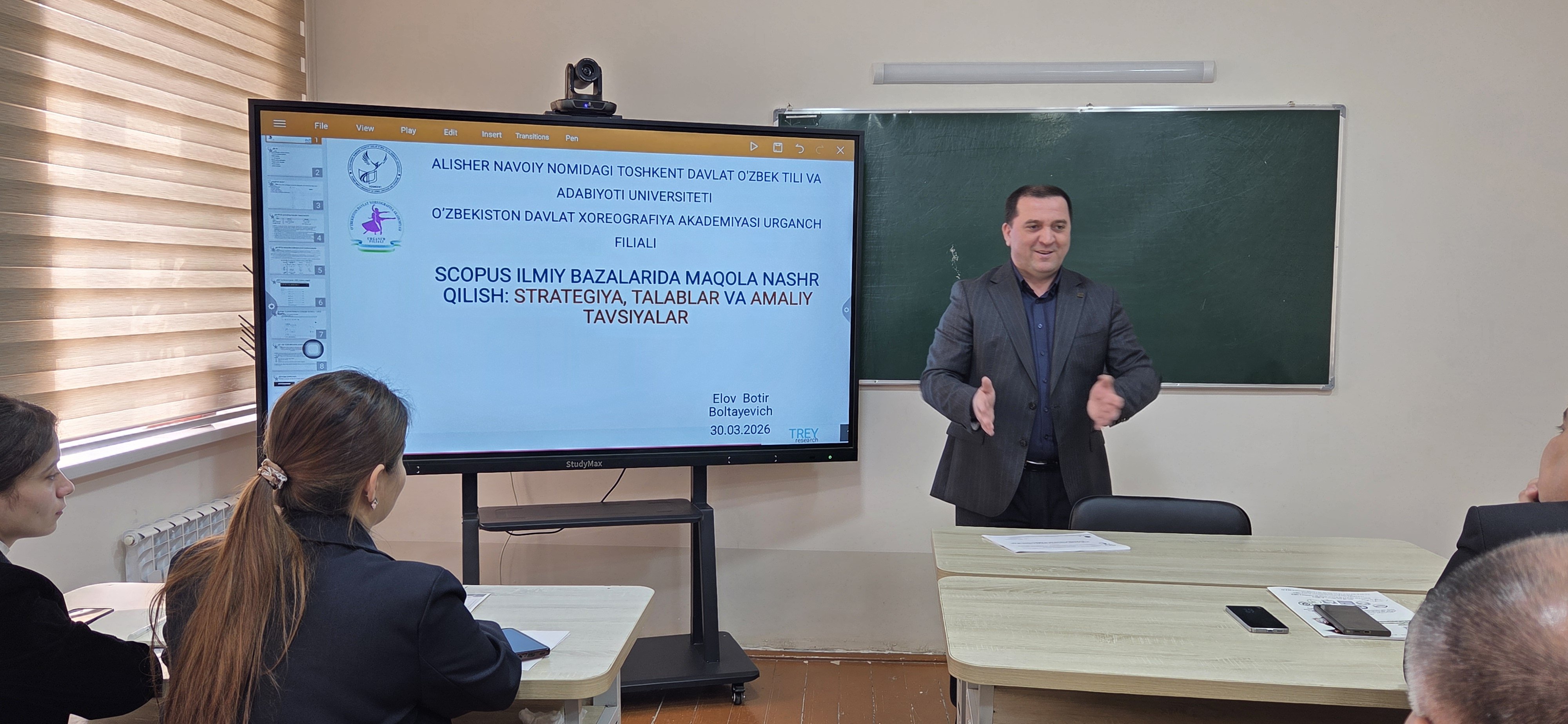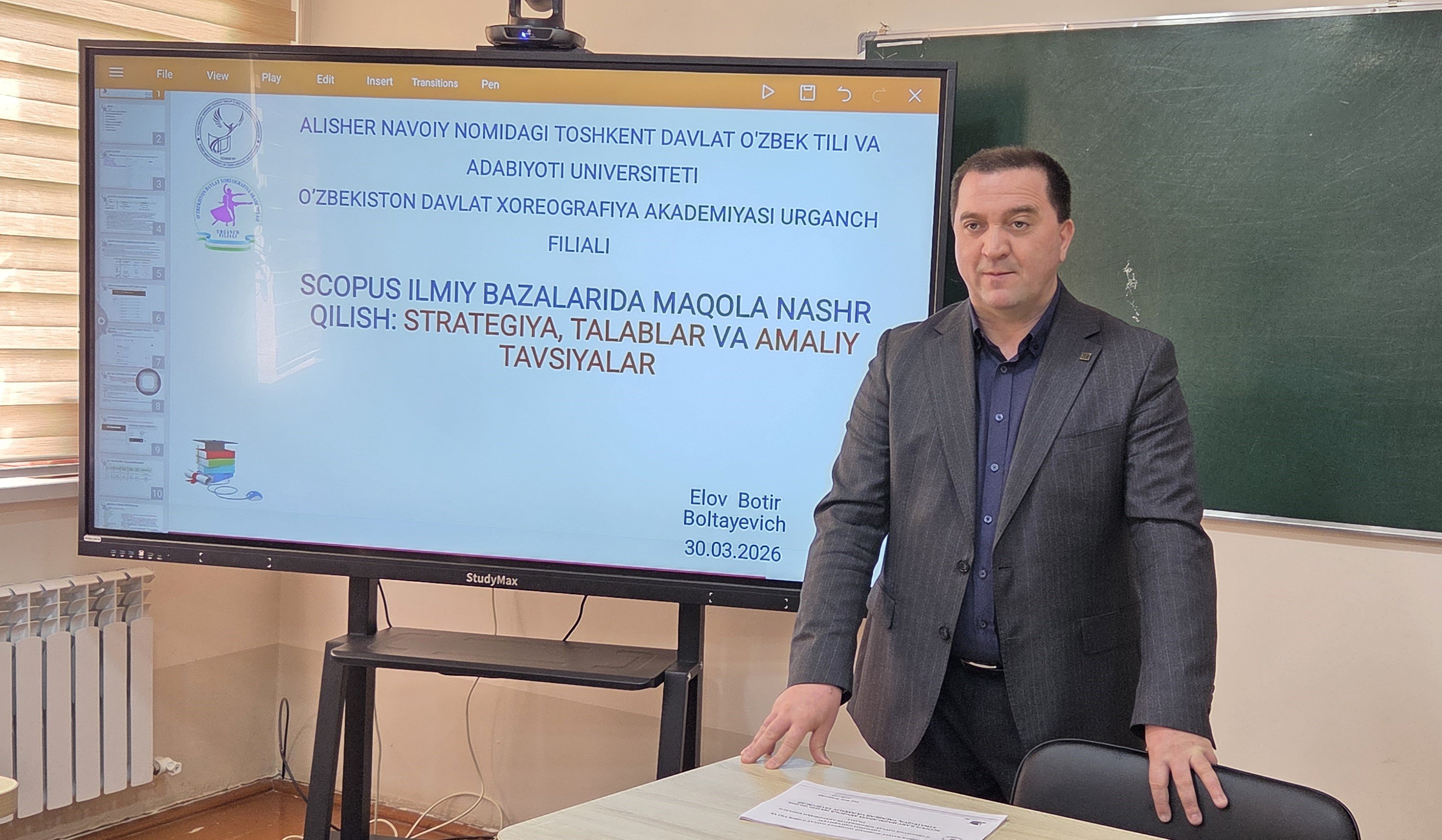 Bugun, 2026-yil 30-mart kuni O‘zbekiston davlat xoreografiya akademiyasi Urganch filiali tashabbusi bilan Alisher Navoiy nomidagi Toshkent davlat o‘zbek tili va adabiyoti universitetining “Kompyuter lingvistikasi va raqamli texnologiyalari” kafedrasi mudiri, texnika fanlari doktori (DSc), dotsent Botir Elov ishtirokida Scopus va Web of Science xalqaro ilmiy bazalariga bag‘ishlangan ilmiy-amaliy seminar oflayn tarzda tashkil etildi.