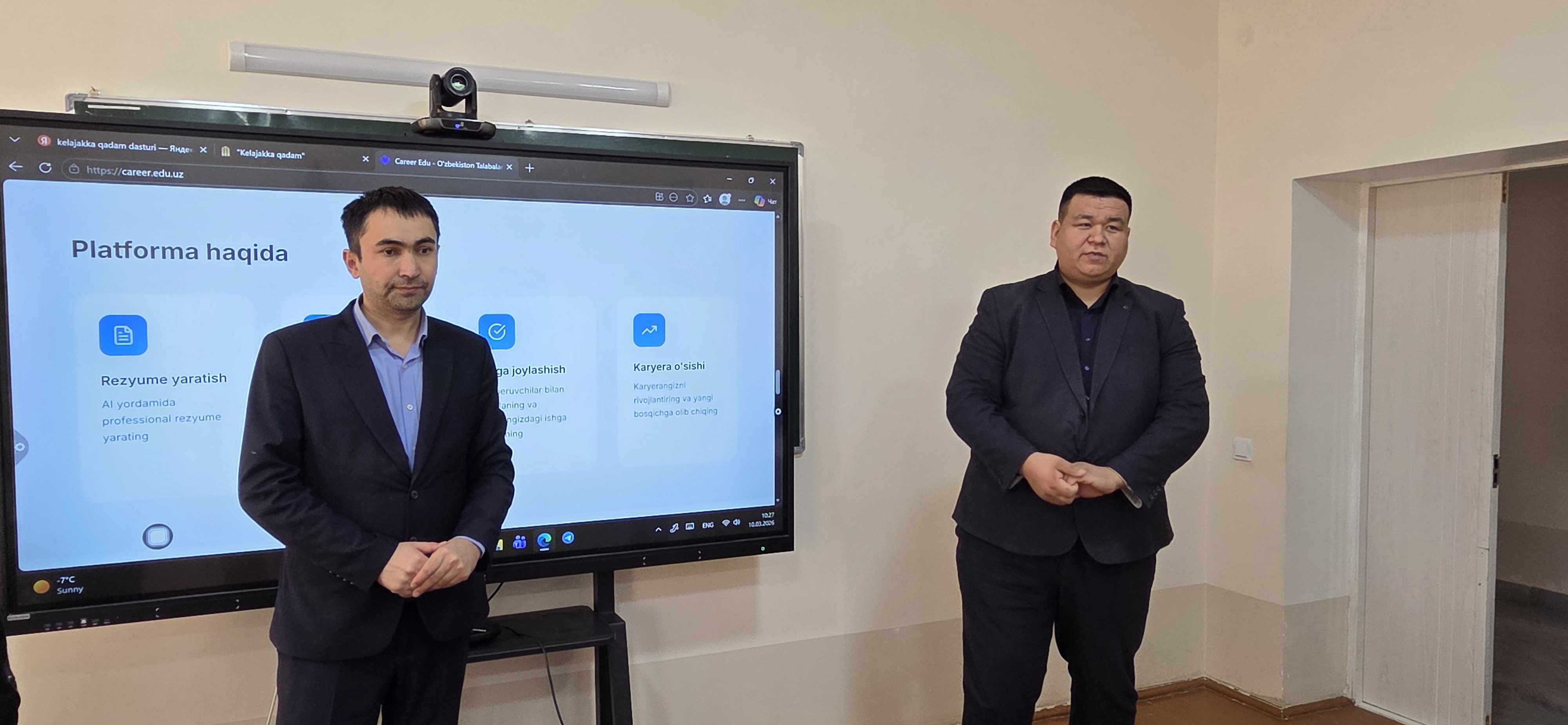 Unda o‘quv ishlari bo‘yicha direktor o‘rinbosari Saubet Pirnazarov, O‘quv-metodik ta'minot bo‘limi boshlig‘i Doniyor Xo'janiyazov, Talabalar amaliyot bo‘limi boshlig‘i va karyera markazi rahbari Zulfizar Toxirovalar tomonidan tushuntirishlar olib borildi.