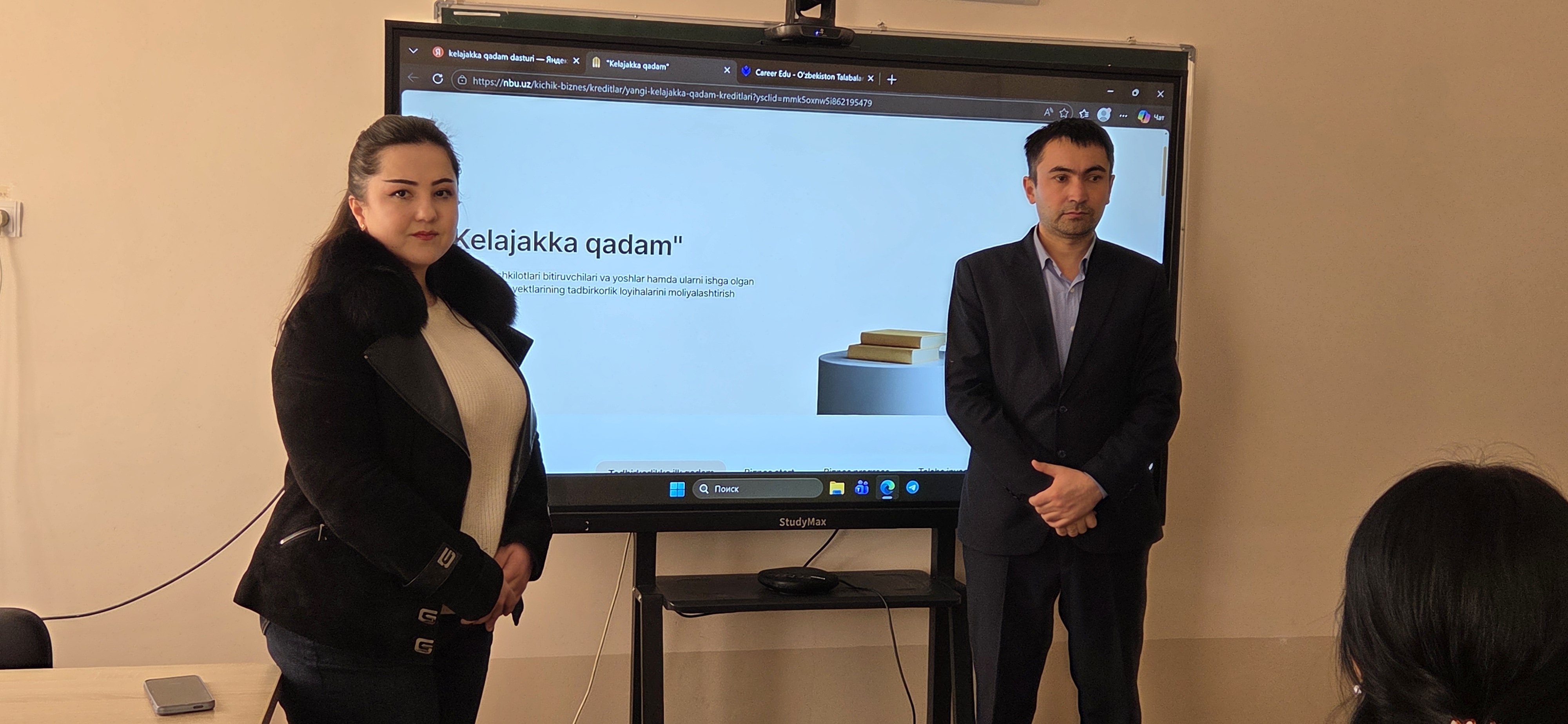 Uchrashuv davomida talabalar “Mening birinchi kasbim” dasturida yaratilgan imkoniyatlar, Biznes-reja tayyorlash usullari, “Yosh tadbirkor” loyihasi va boshqa tadbirkorlik dasturlari haqida ma’lumot olishdi.