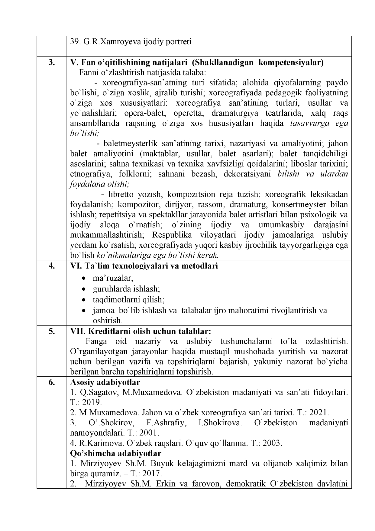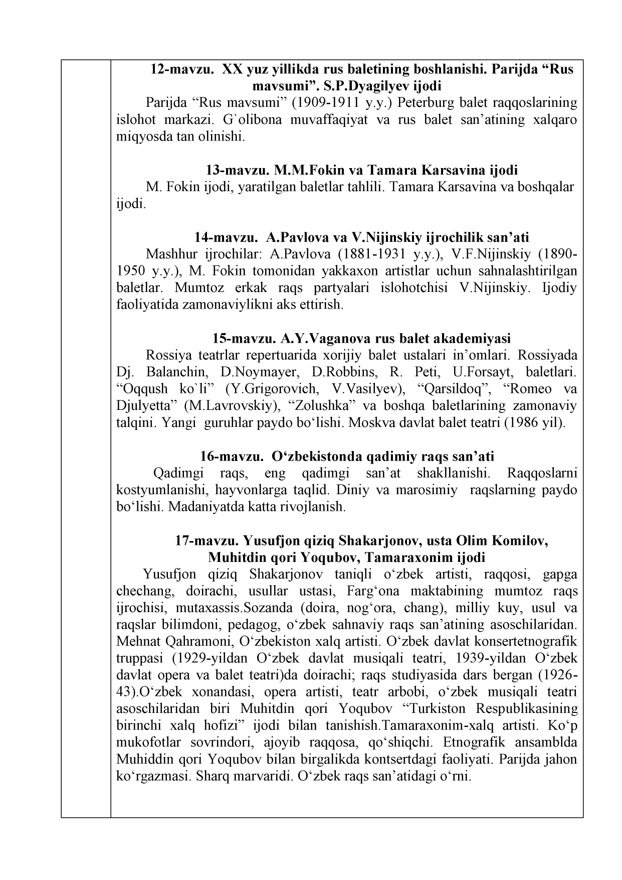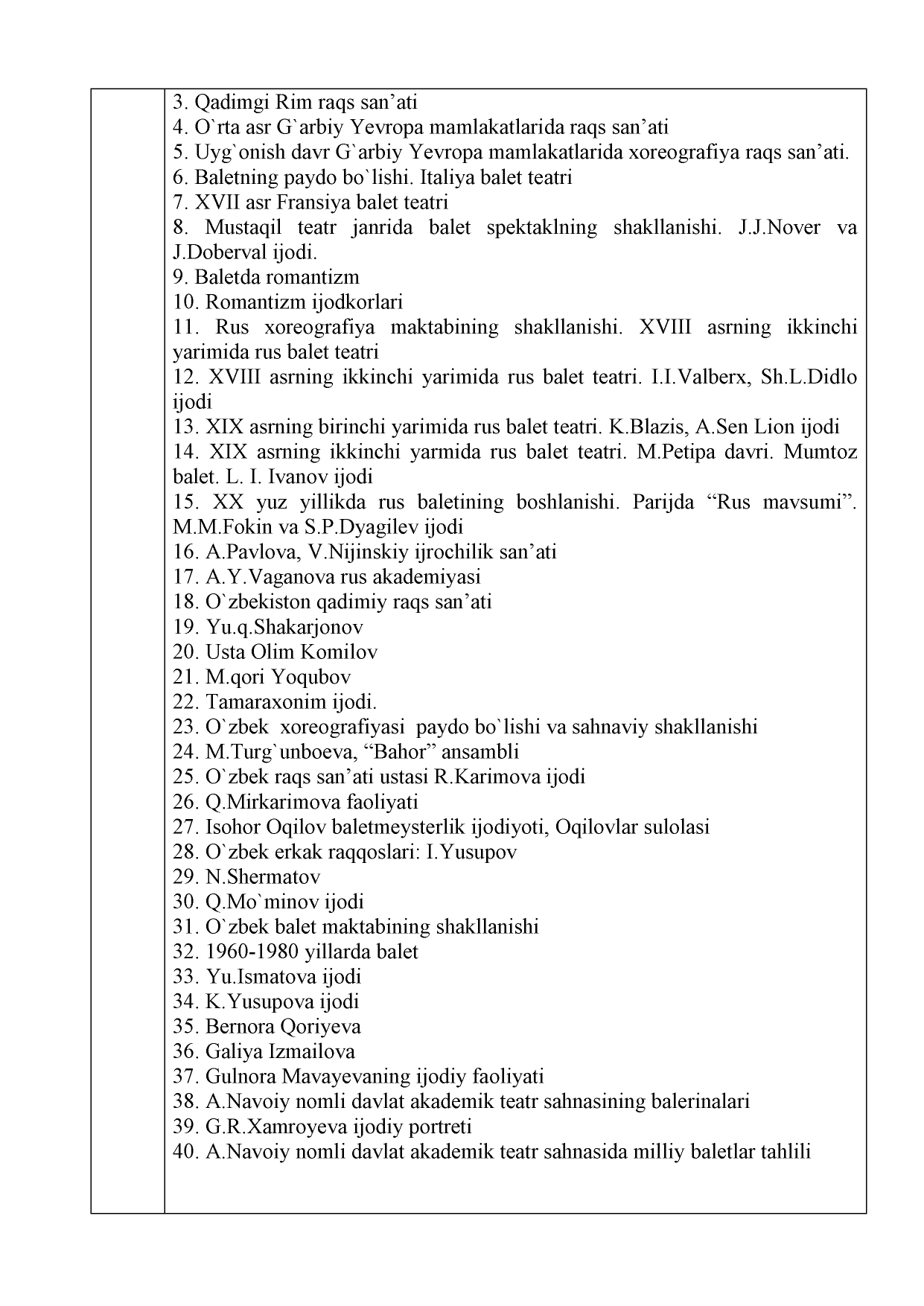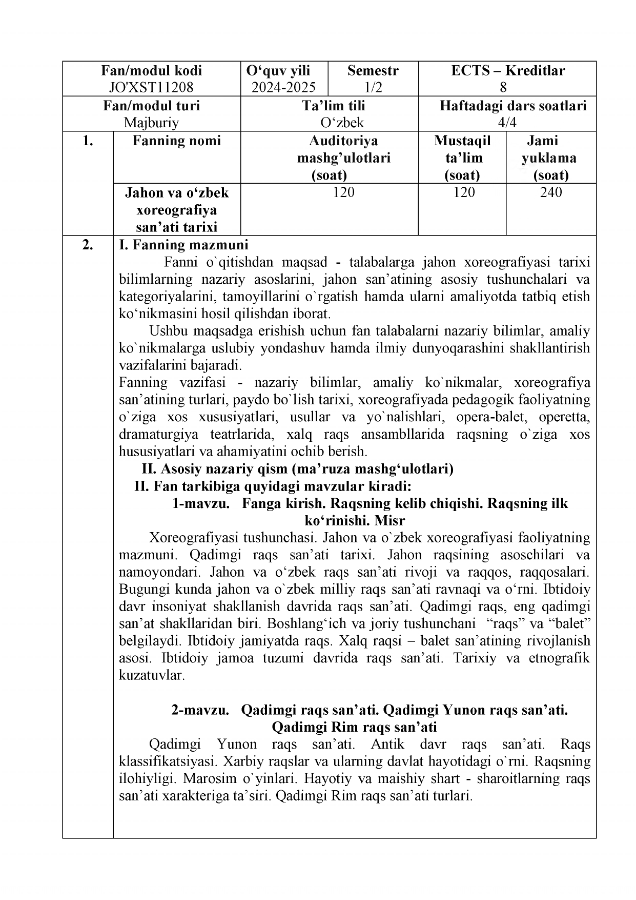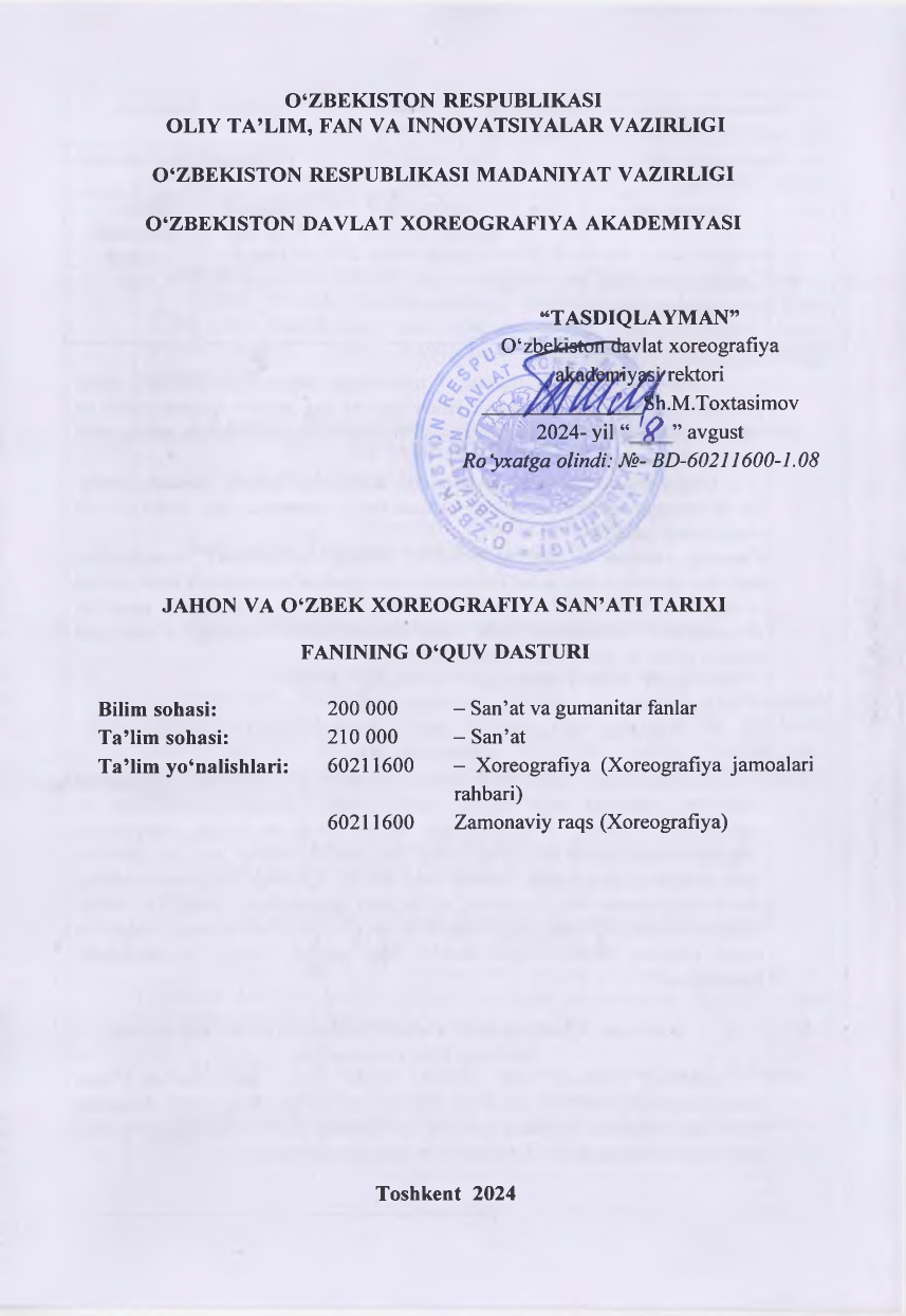 Jahon va o'zbek xoreografiya san'ati tarixi