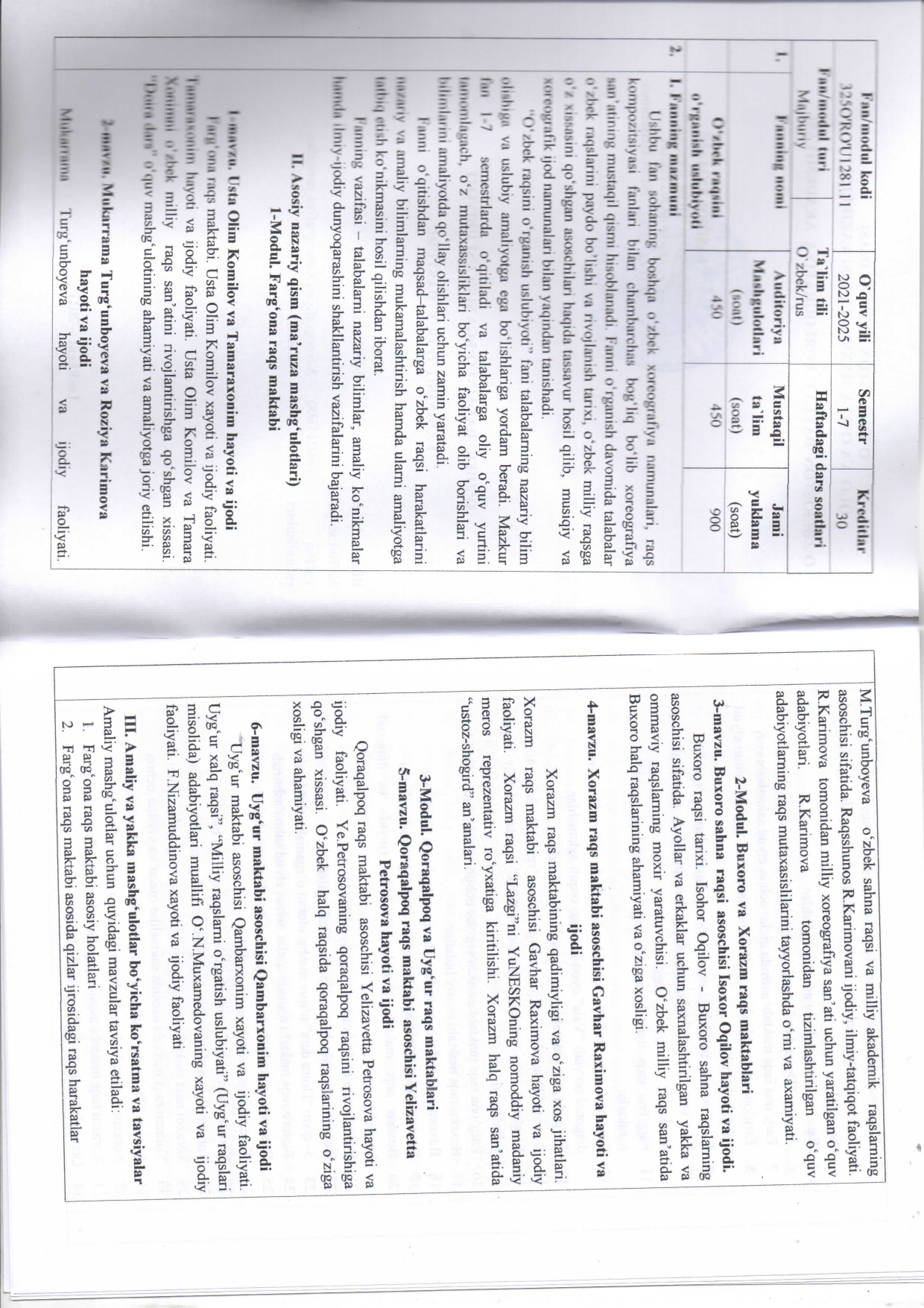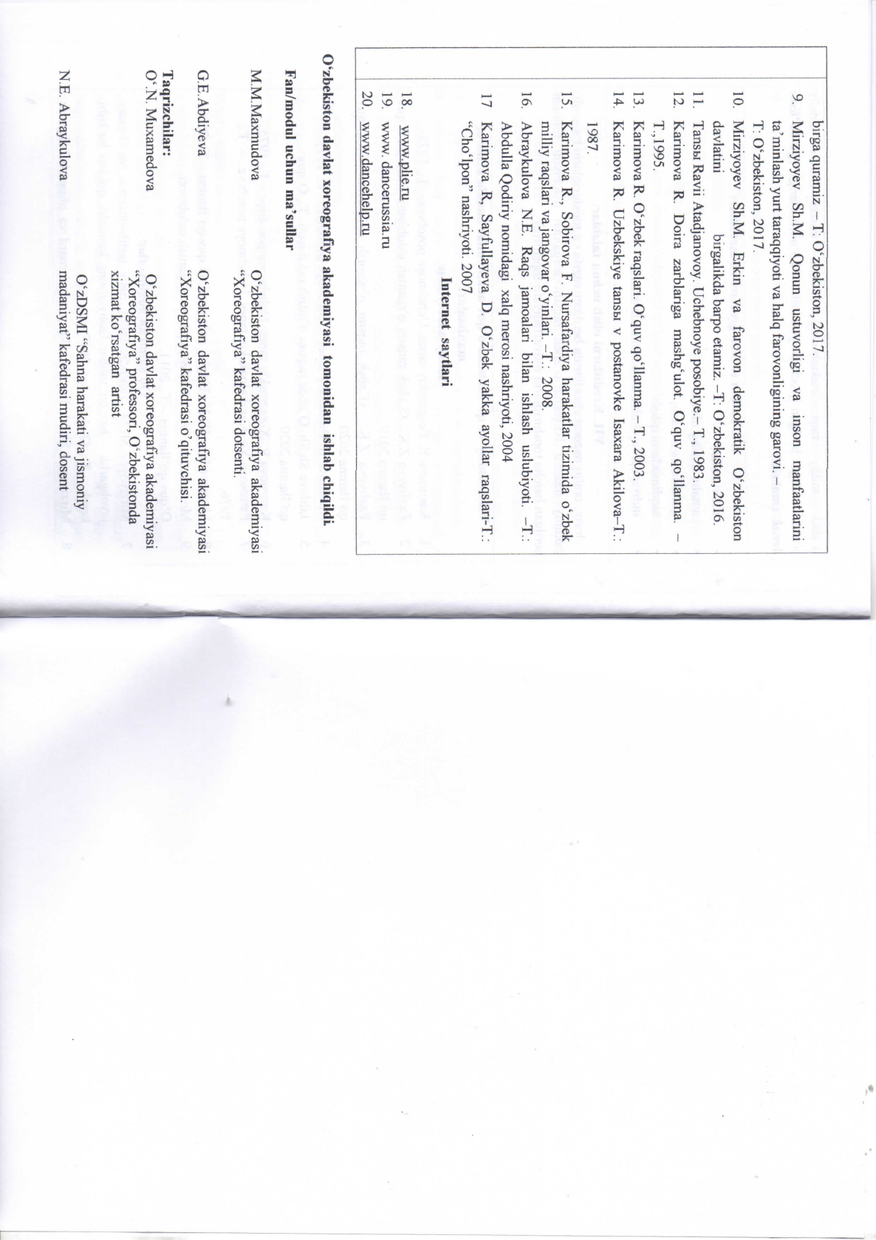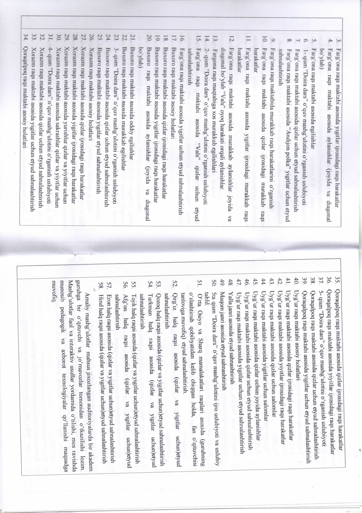 Xoreografiya (XJR) O'zbek raqsini o'rganish uslubiyoti