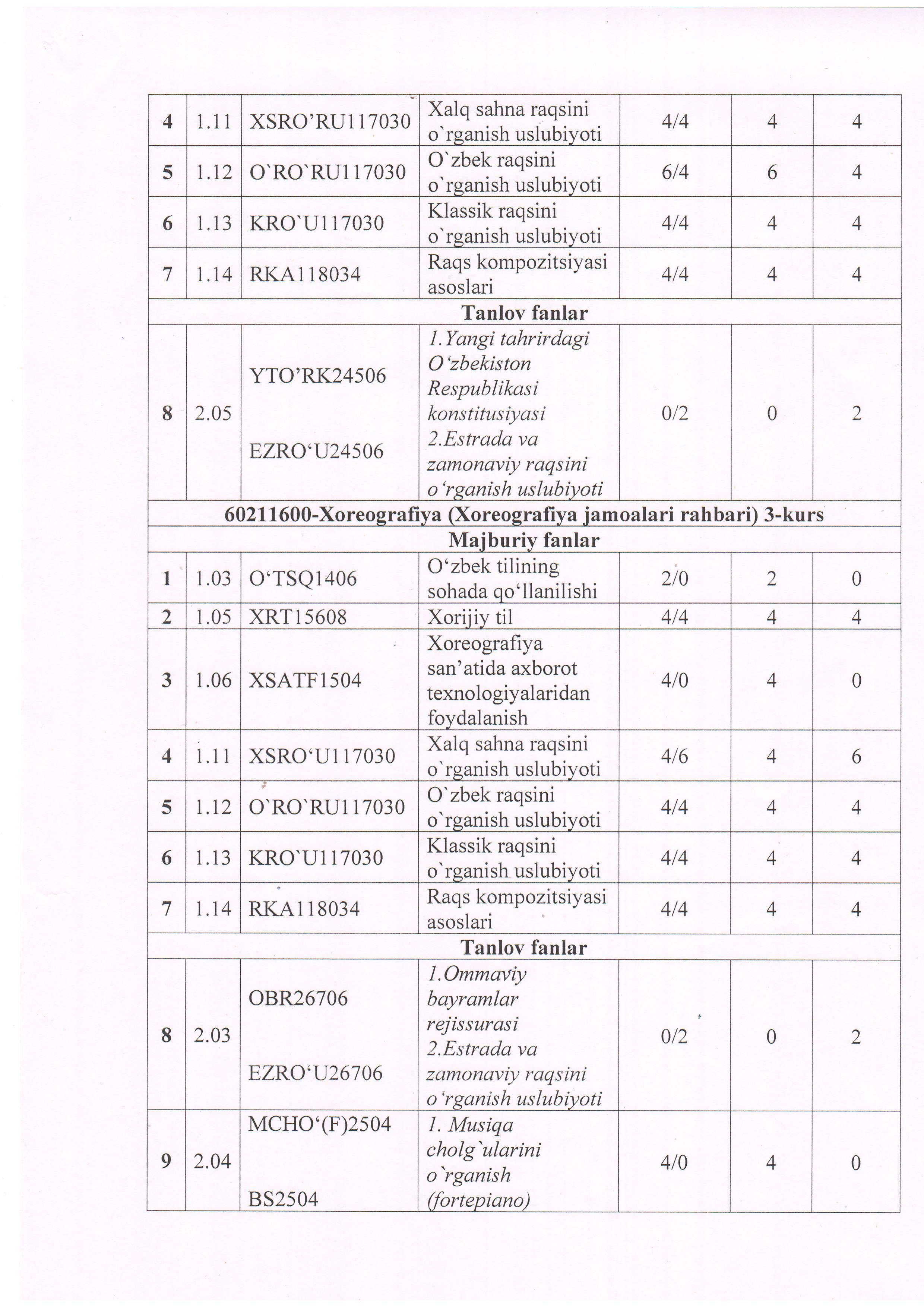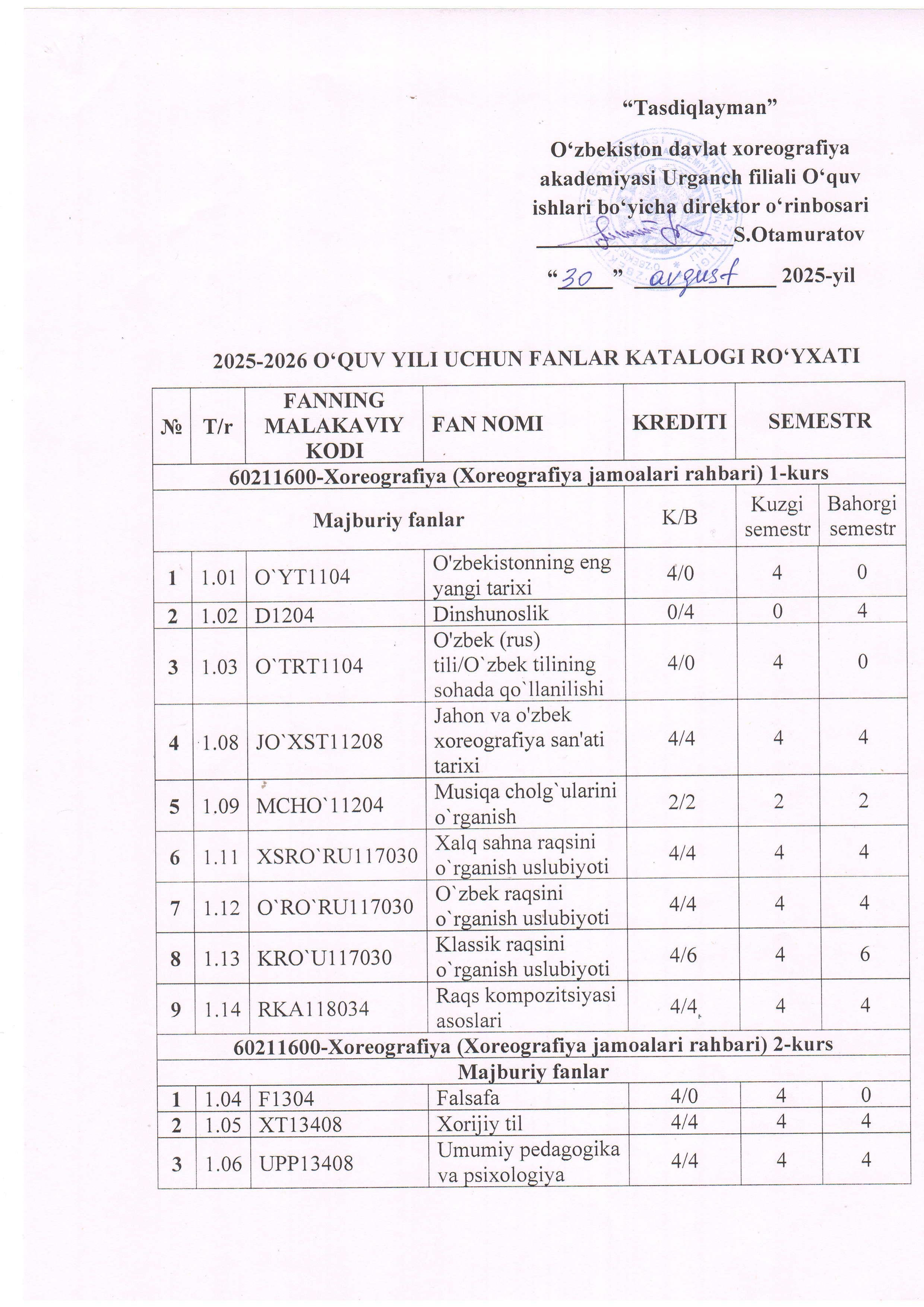 2025-2026 o`quv yili uchun fanlar katologi