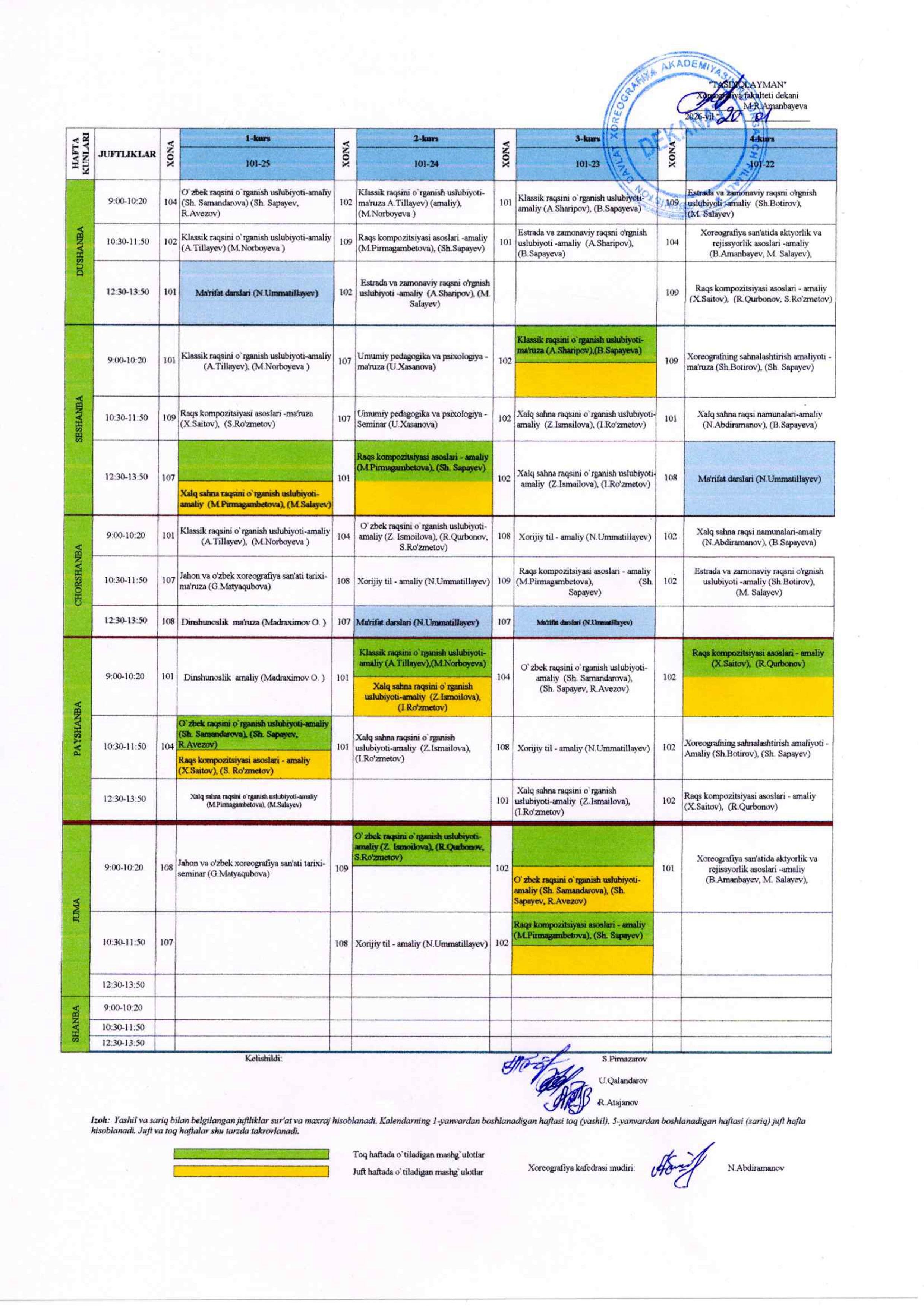 2025-2026-o`quv yili bahorgi semestr uchun dars jadvali (kunduzgi)