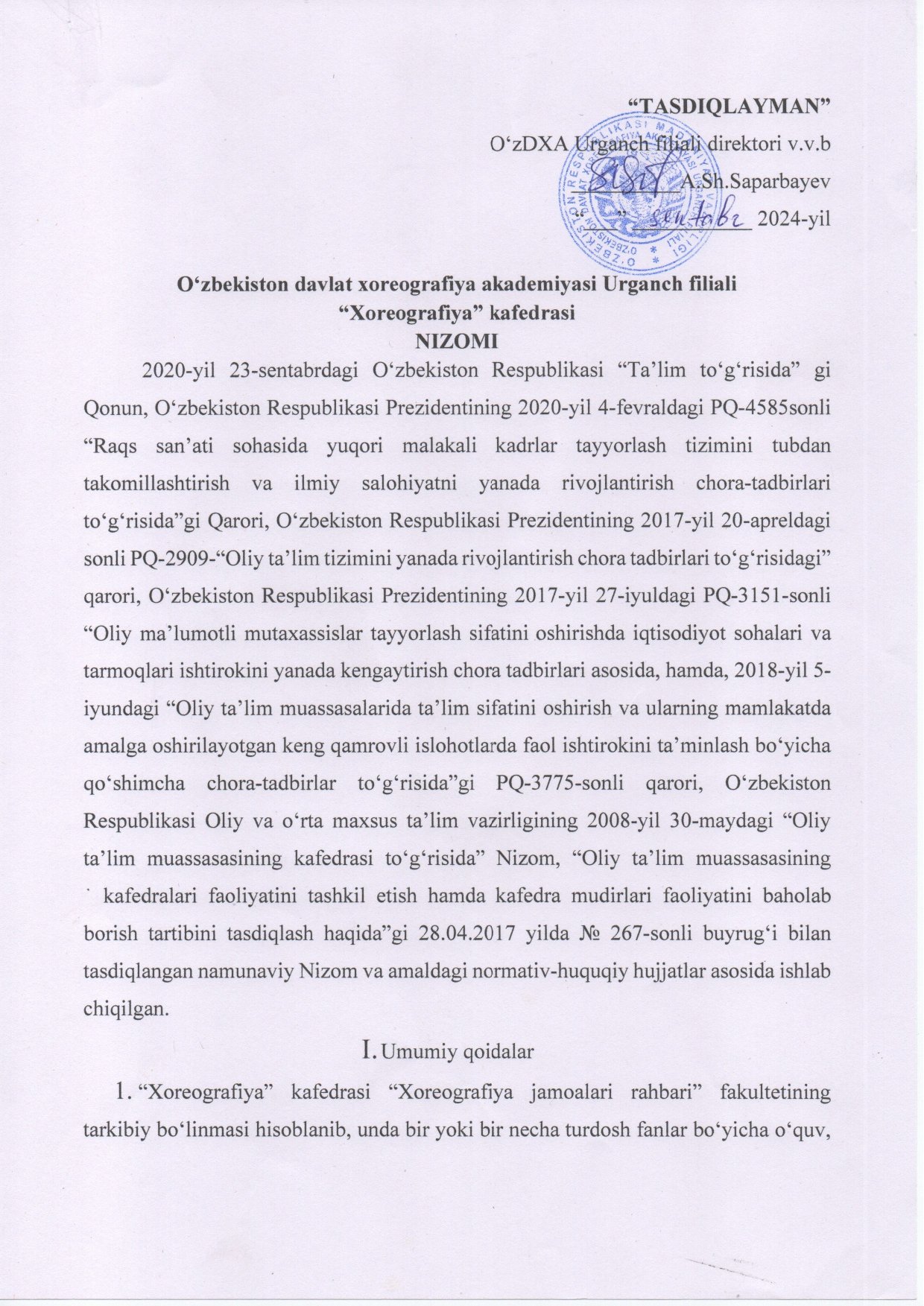 O'zbekiston davlat xoreografiya akademiyasi Urganch filiali