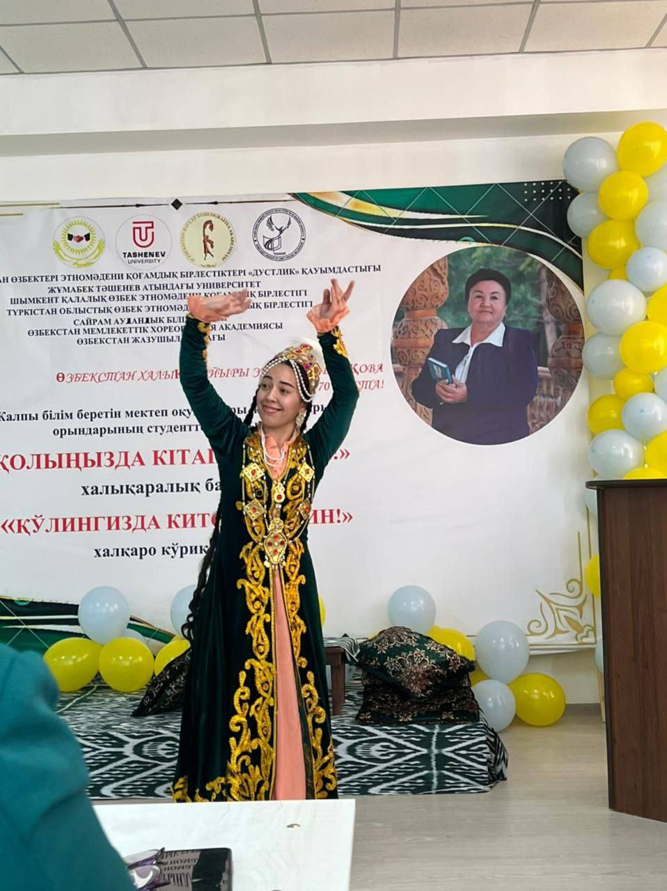 🌐Joriy yilning 2-aprel kuni shoira ijodini chuqur o‘rganish jarayonida o‘zbek tilining jozibadorligini, turkiy xalqlar hamdo‘stligini targ‘ib qilish, qozoq–o‘zbek xalqlari qardoshligini, ilmiy–ijodiy hamkorligini mustahkamlash maqsadida Qozog‘iston Respublikasi, Qozog‘iston o‘zbeklari etnomadaniy birlashmalari “Do‘stlik” hamjamiyati, O‘zbekiston Yozuvchilar uyushmasi, O‘zbekiston davlat xoreografiya akademiyasi hamkorligida J.Tashenev nomli universitetda oliy o‘quv yurtlari talabalari va umumta’lim maktablarining 10-11-sinf o‘quvchilari o‘rtasida “Qo‘lingizda kitob bo‘lsin!” mavzusida xalqaro ko‘rik-tanlov hamda xalqaro ko‘rik-tanlov doirasida  «Raqslarda millat tarixi» shiori ostida raqs tanlovi ham bo‘lib o‘tdi.