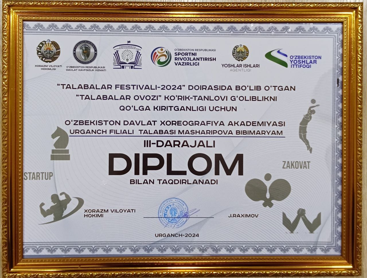 Mazkur festivalda OʻzDXA Urganch filiali iqtidorli talabalari ham tanlov va musobaqalarda faxrli o'rinlarni qo'lga kiritishdi. Jumladan: