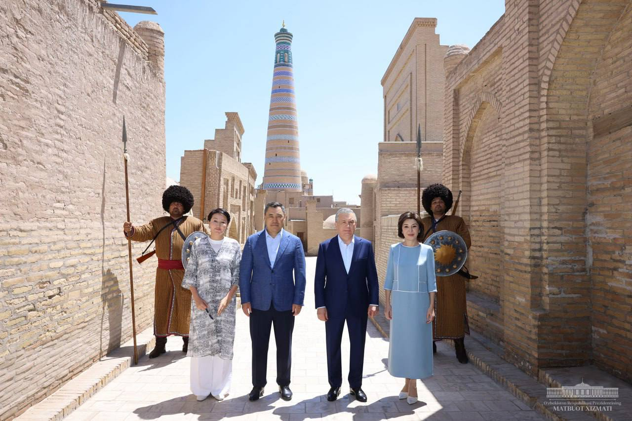 havkat Mirziyoyev va Sadir Japarov ikki mamlakat birinchi xonimlari bilan birgalikda Xiva shahridagi Ichan qal’a majmuasi va Nurillaboy saroy majmuasiga tashrif buyurdilar.