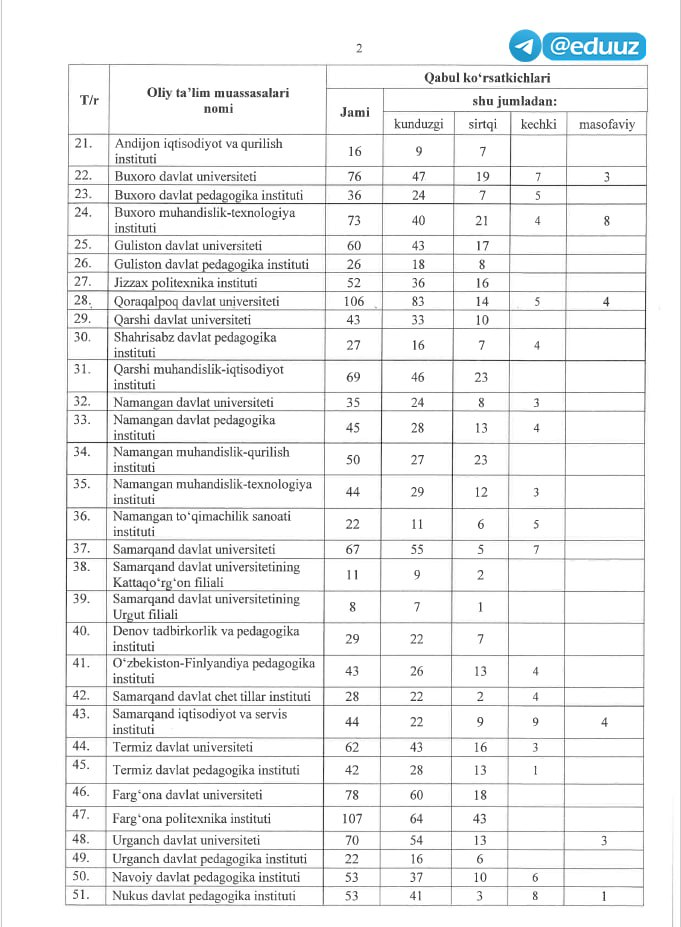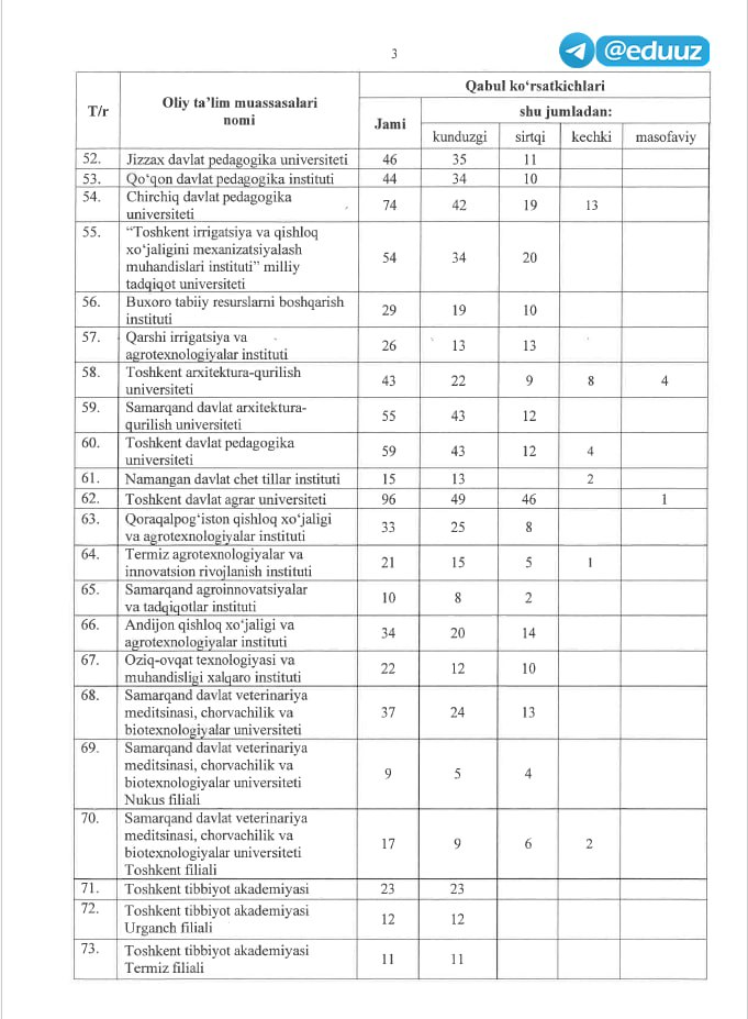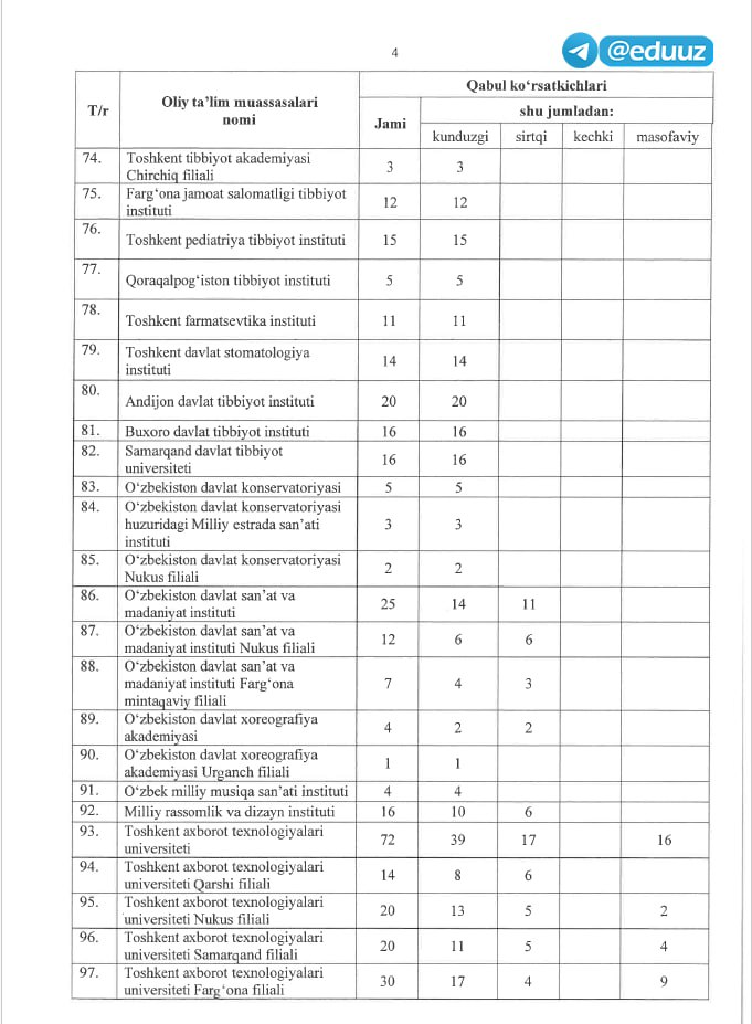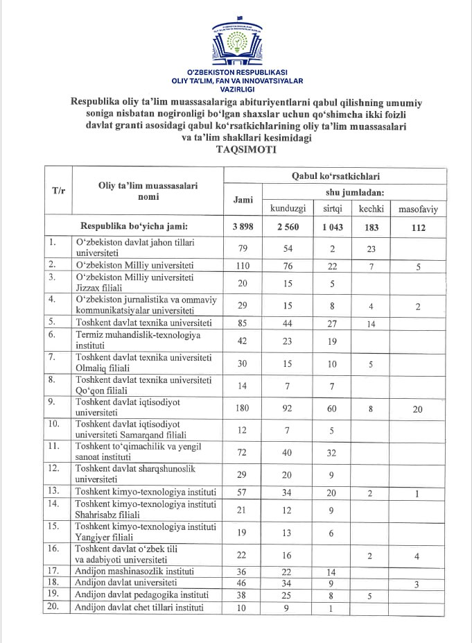 ▪️ Jami: 3 898 ta qo‘shimcha kvota. Shundan: