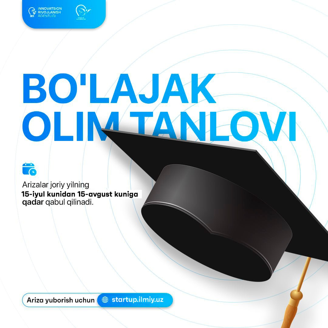 ✉️ Tanlovga arizalar joriy yilning 15-iyul kunidan 15-avgust kuniga qadar (shu kuni ham) qabul qilinadi.