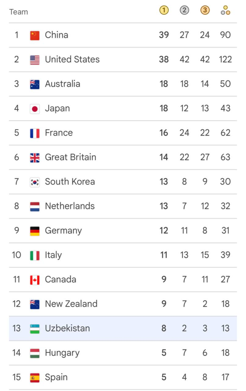 O’zbekiston delegatsiyasi 13-o’rinda!