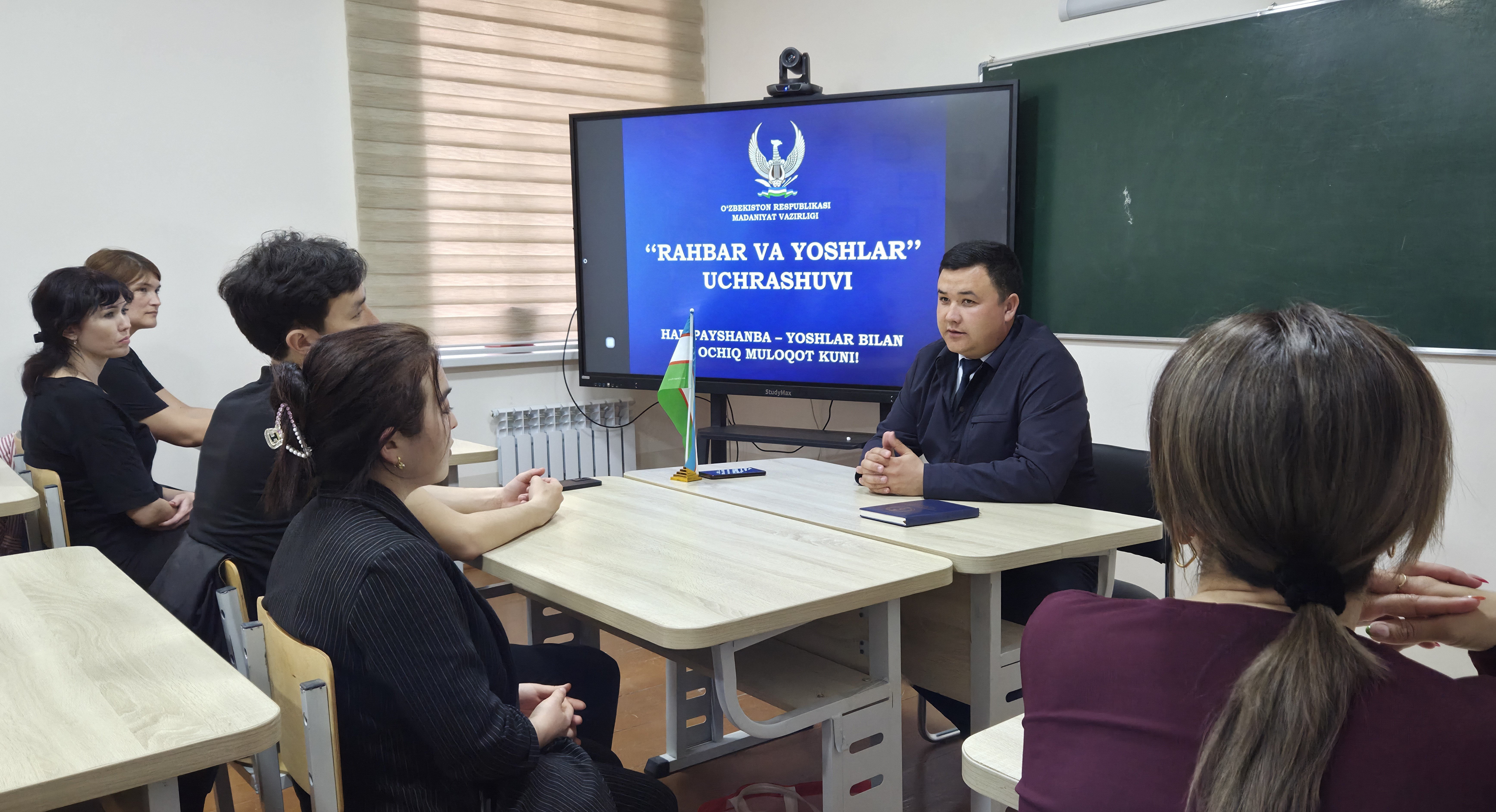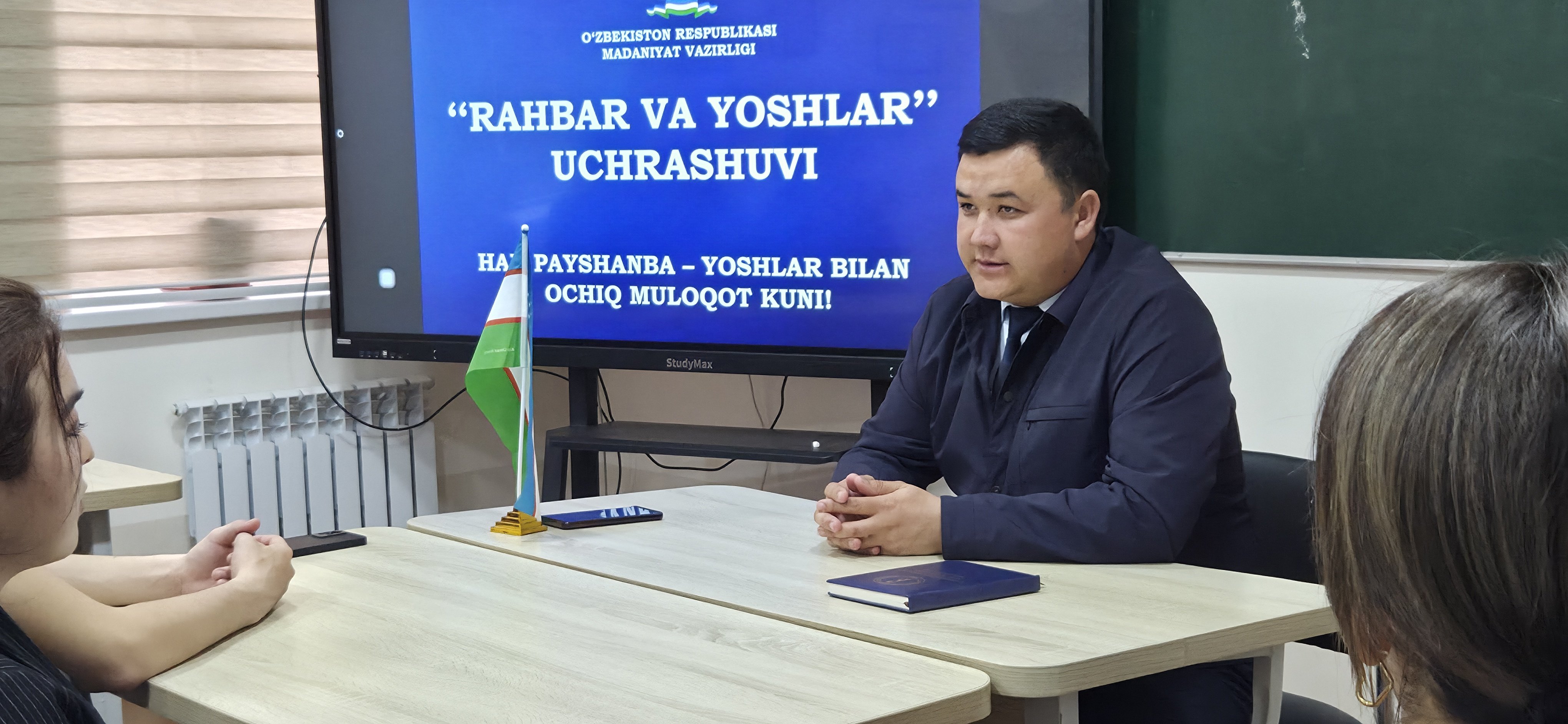 2026-yil 2-aprel kuni Oʻzbekiston davlat xoreografiya akademiyasi Urganch filialida, payshanba – Yoshlar kuni doirasida “Rahbar va yoshlar uchrashuvi” tashkil etildi.
