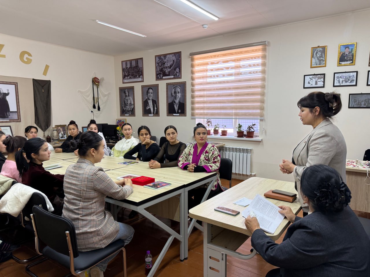 Ular talabalar bilan qizlarning jamiyatdagi o‘rni, ularning ma’naviy kamoloti, oila va ta’limdagi faolligini oshirish masalalari yuzasidan samimiy suhbat olib borishdi.