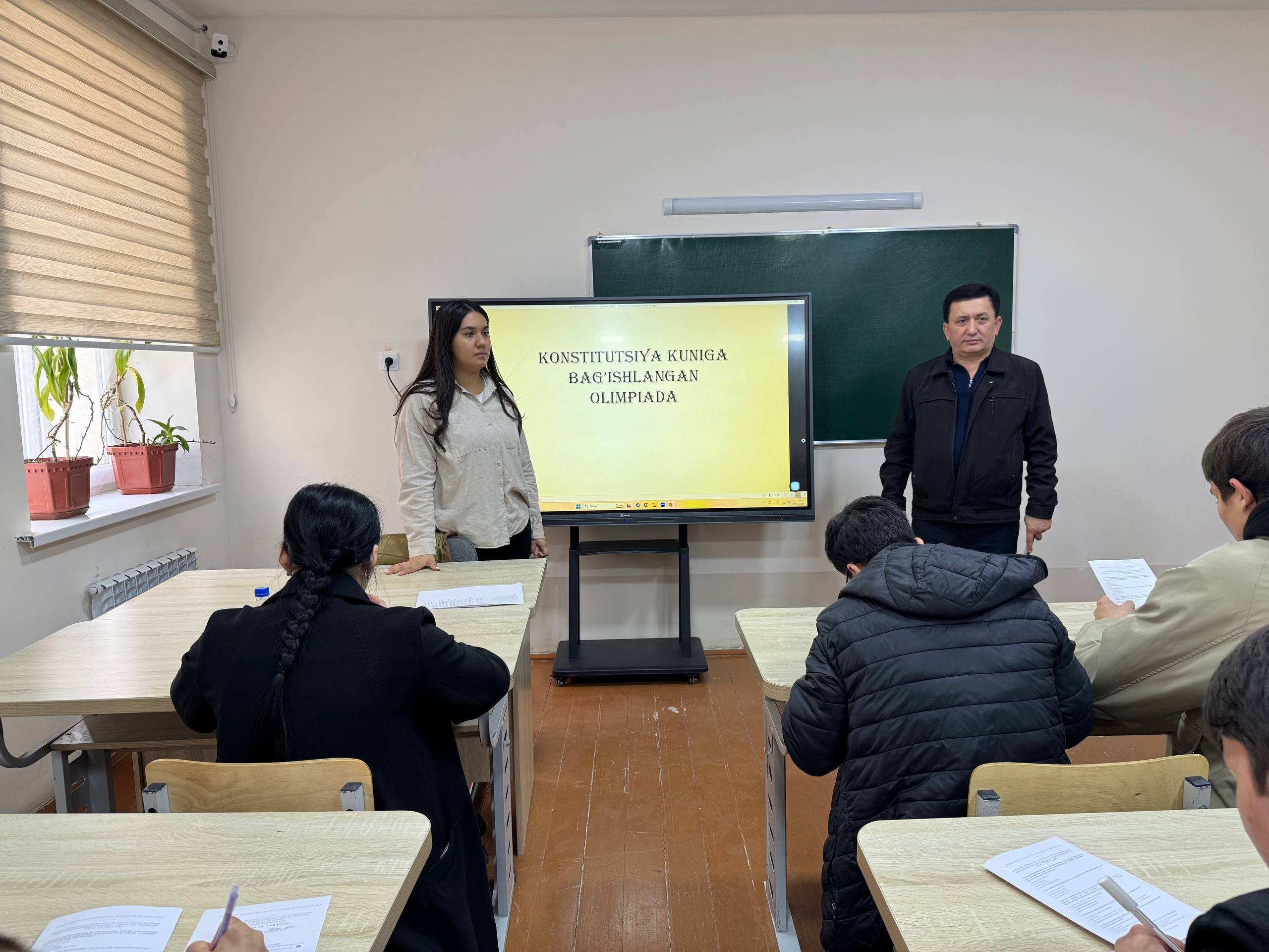 💫 O‘zbekiston Respublikasi Prezidentining 2025-yil 21-oktabrdagi F-60-son Farmoyishi hamda uning 1-ilovasi 43-bandida belgilangan topshiriqlar ijrosini ta’minlash maqsadida O‘zbekiston Respublikasi Konstitutsiyasi qoidalari va tamoyillarini chuqur o‘rganishga qaratilgan olimpiada tashkil etildi.