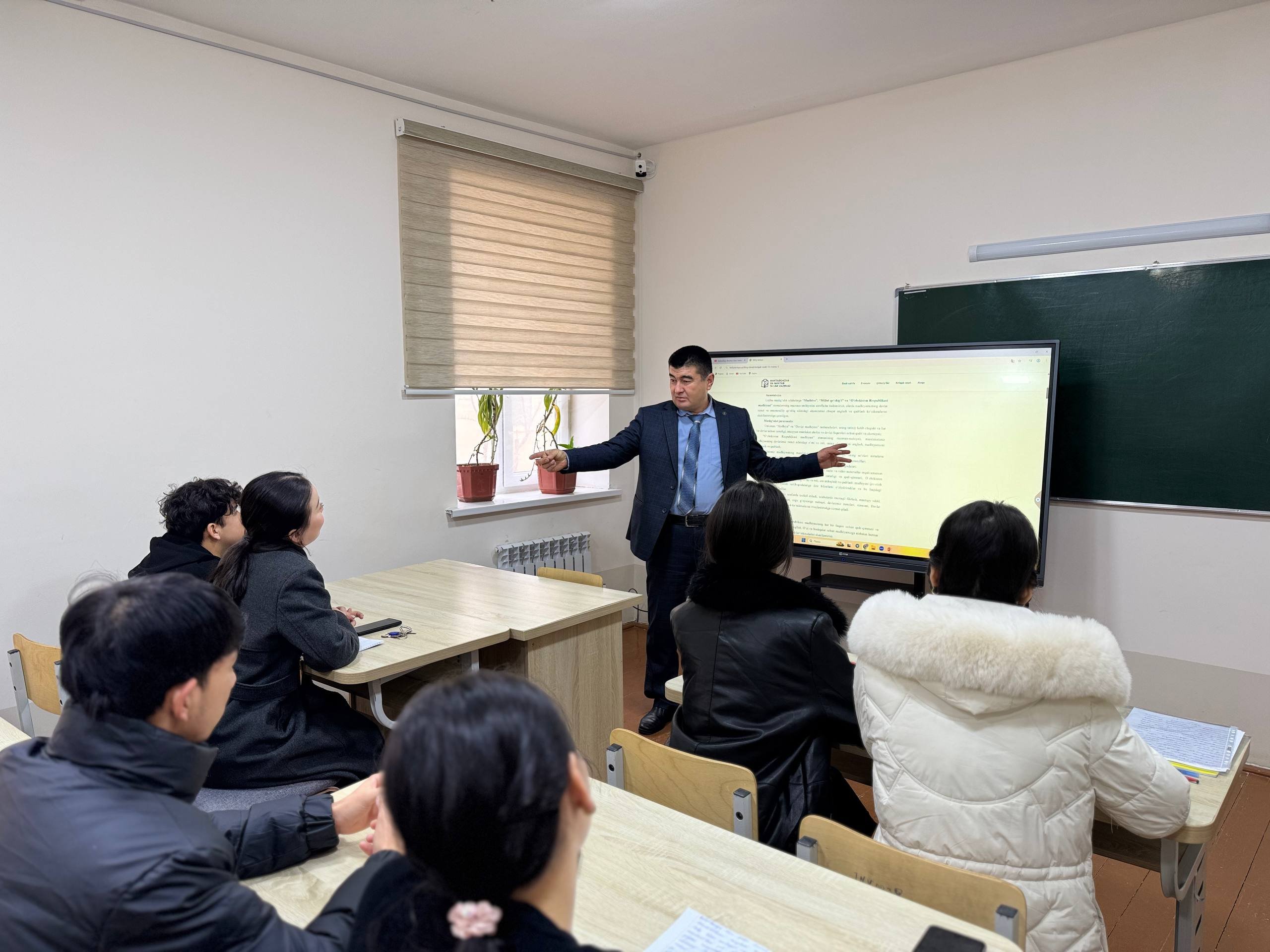 Mazkur darsni filial direktorining birinchi o‘rinbosari A.Saparbayev olib bordi. U o‘z ma’ruzasida yosh avlodni vatanparvarlik ruhida tarbiyalash, milliy qadriyatlarni e’zozlash hamda davlat ramzlariga hurmat bilan munosabatda bo‘lish muhimligini alohida ta’kidladi.