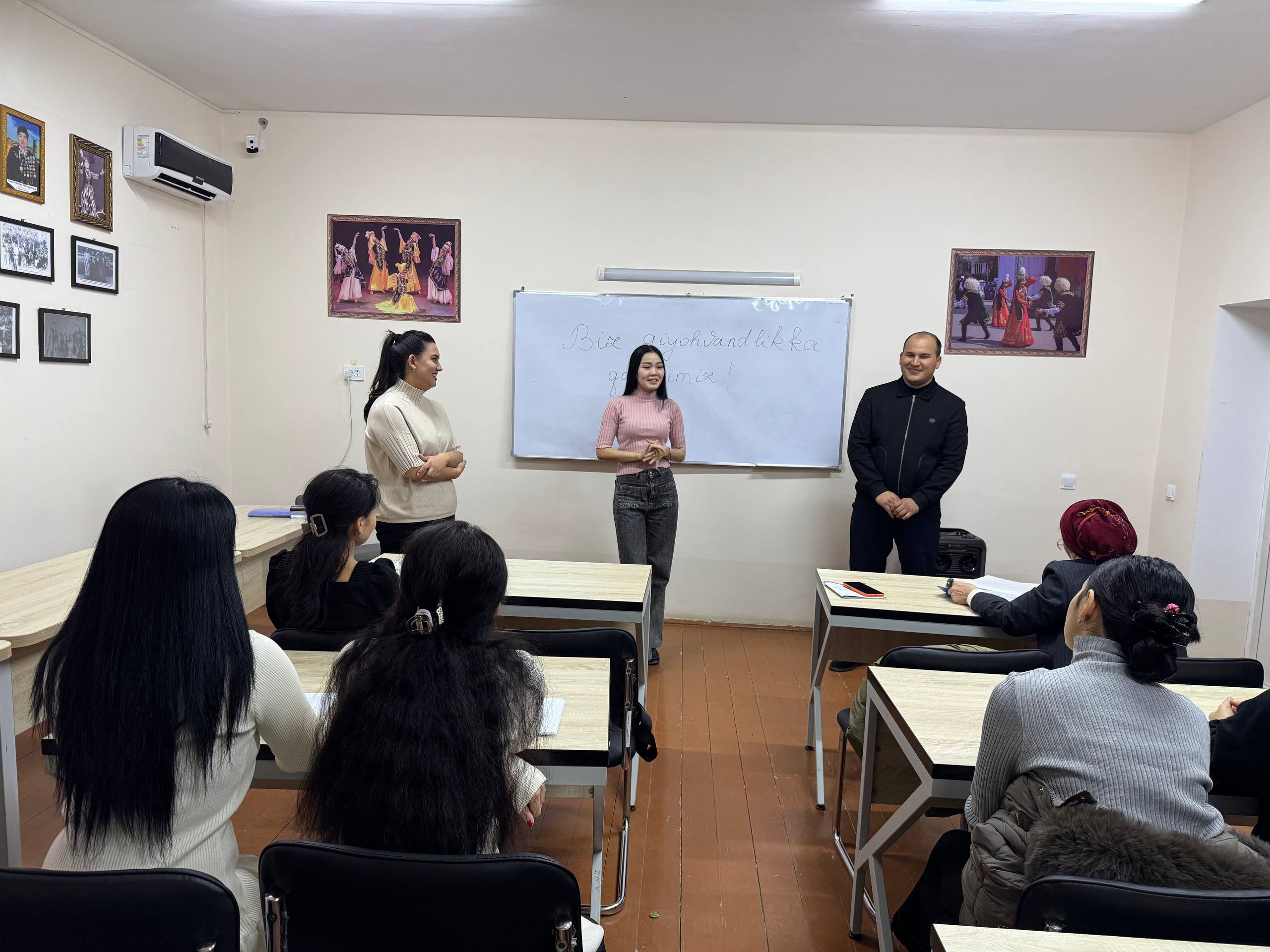O‘zbekiston Respublikasi Prezidentining 2025-yil 3-noyabrdagi PФ–207-sonli Farmoni ijrosini ta’minlash maqsadida O‘zbekiston davlat xorteografiya akademiyasi Urganch filiali Yoshlar yetakchi M.OLLaberganova hamda targ'ibot guruhi a'zolari tomonidan navbatdagi targ‘ibot tadbiri o‘tkazildi.
