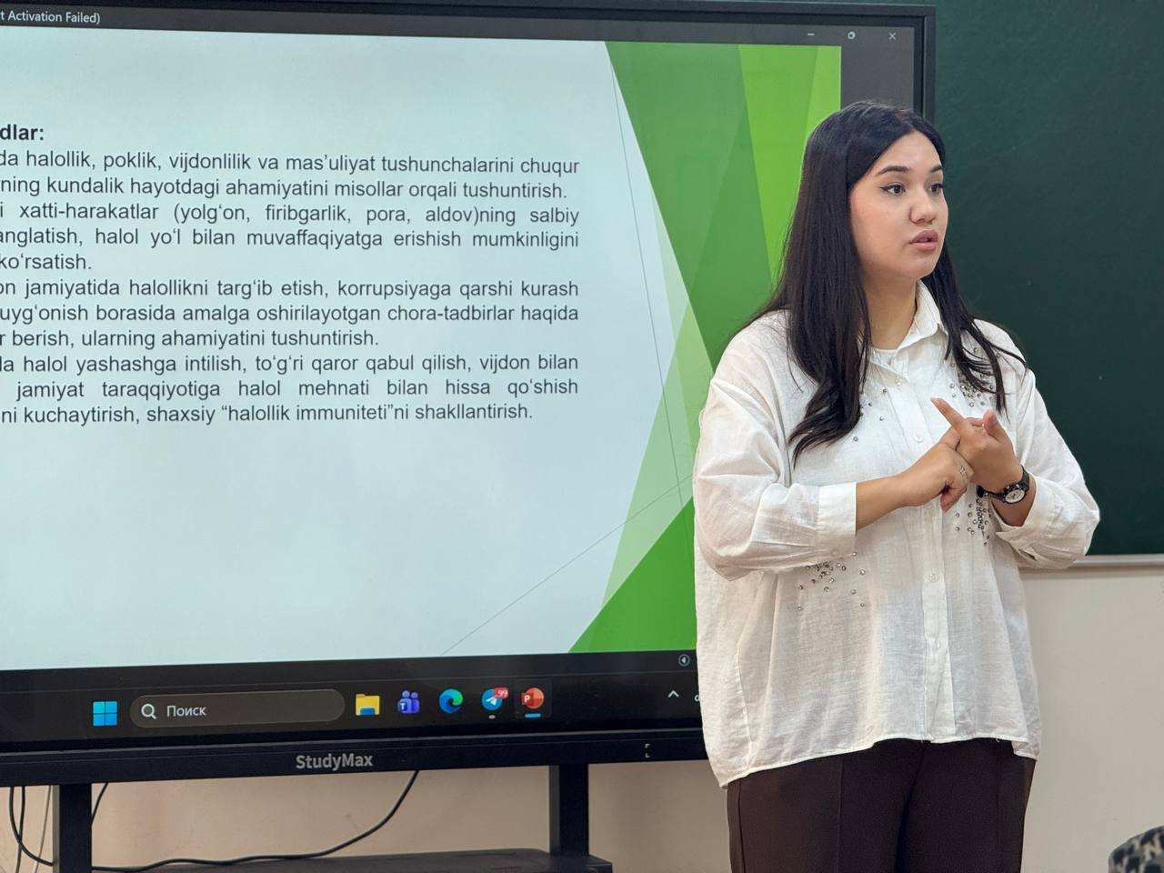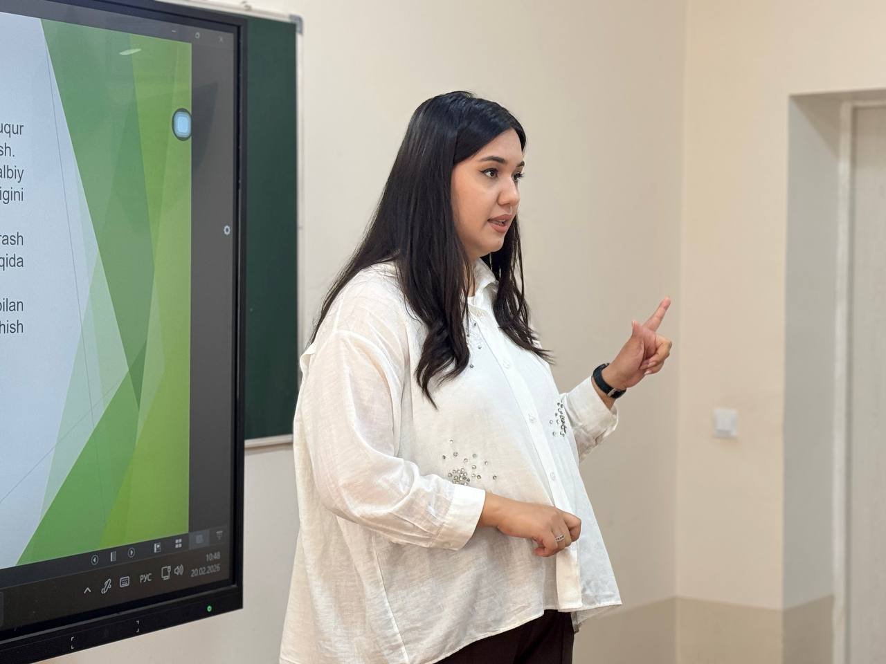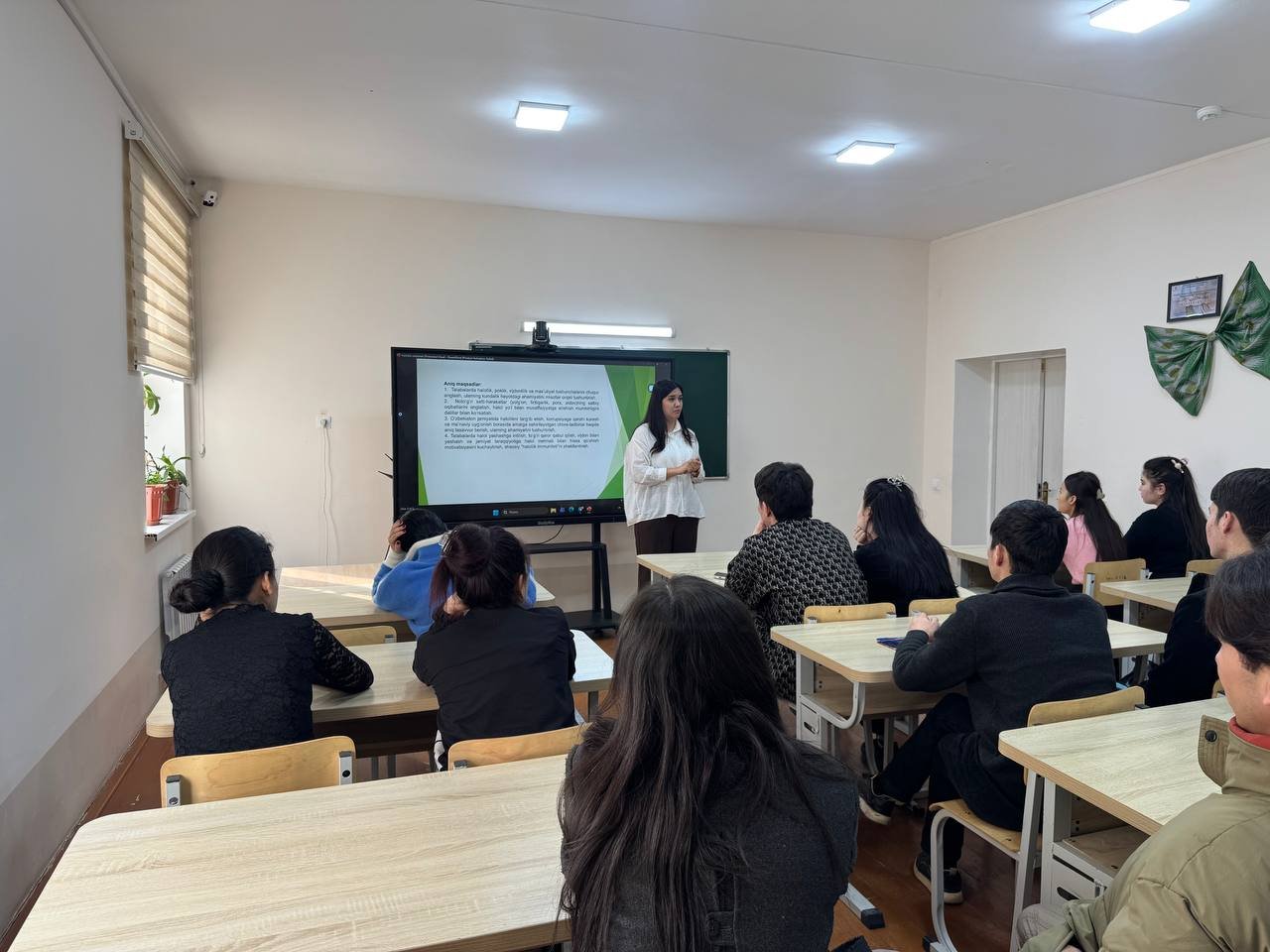 “Halollik vaksinasi” mavzusida tashkil etilgan darsni Xoreografiya fakulteti dekani o‘rinbosari M.Ollaberganova olib bordi. Mashg‘ulot davomida talabalarga halollik tushunchasining mazmun-mohiyati, uning inson hayotidagi o‘rni va jamiyat taraqqiyotidagi ahamiyati haqida atroflicha ma’lumot berildi.