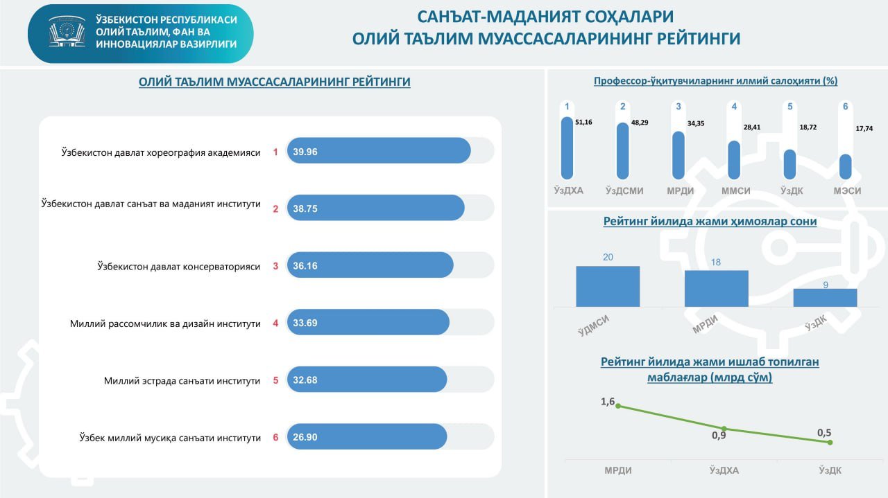 San’at-madaniyat sohalari oliy ta’lim muassasalari reytingi
