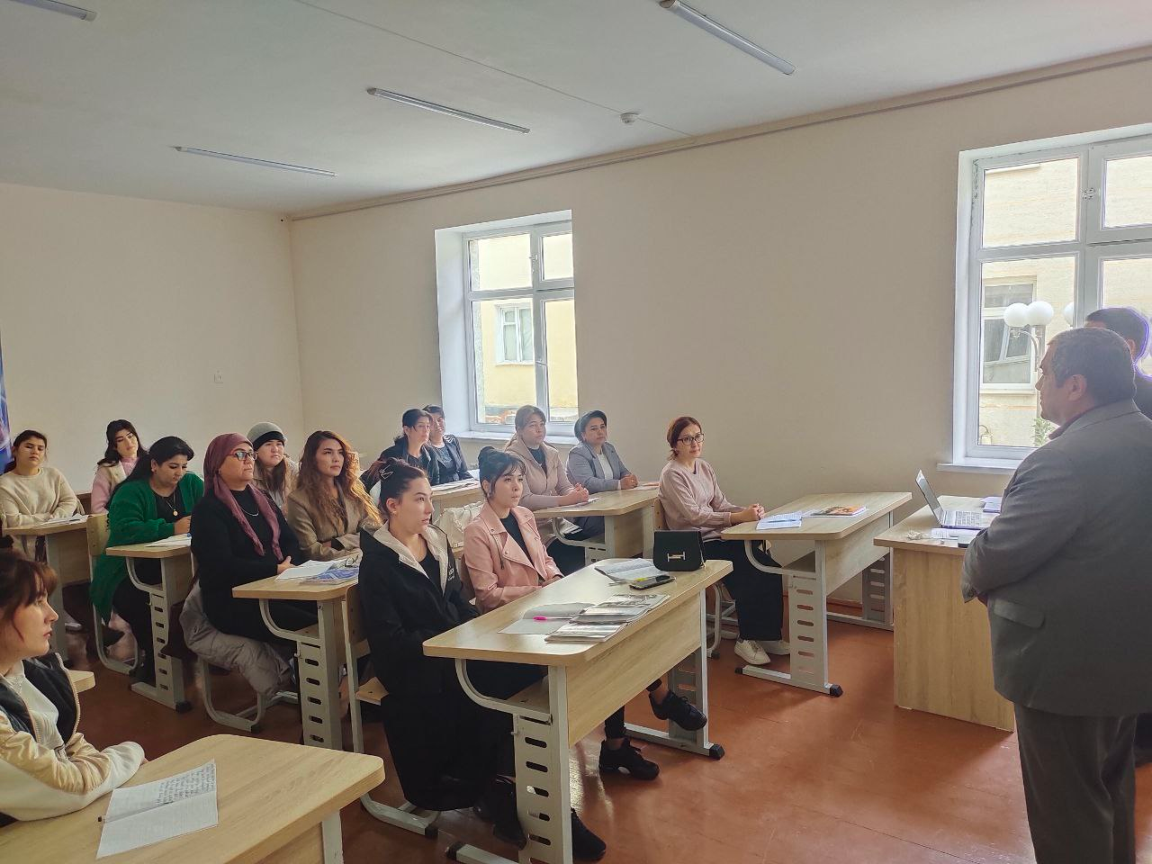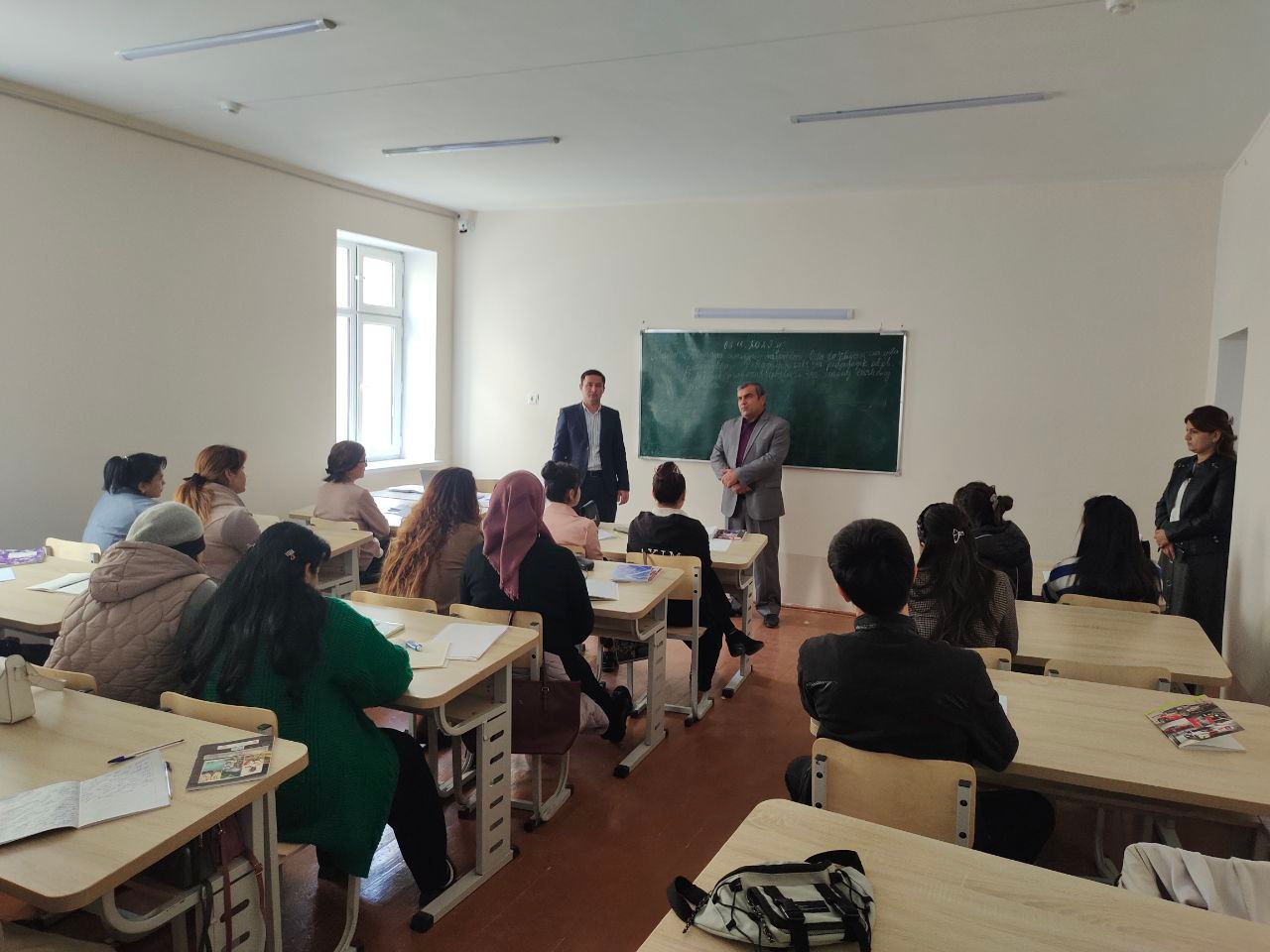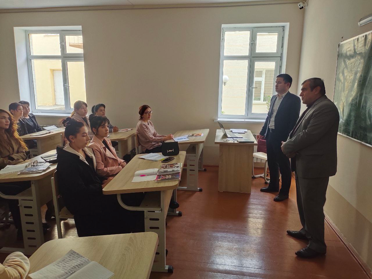 6-noyabr sanasida O‘zbekiston davlat xoreografiya akademiyasi Urganch filialida Korrupsiyaga qarshi kurashish "Komplaens nazorat" tizimini boshqarish bo'limi bosh mutaxassisi M.Nurillaev va “Lazgi” ijrochiligini yanada rivojlantirish bo‘limi boshlig‘i B.Shahanovlar Filialda sirtqi ta’lim shaklida tahsil olayotgan 2-bosqich talabalari bilan Mafkuraviy tahdidlarga qarshi kurash – bugunning dolzarb vazifasi mavzusida ma'naviy-ma'rifiy uchrashuvi bo‘lib o‘tdi.