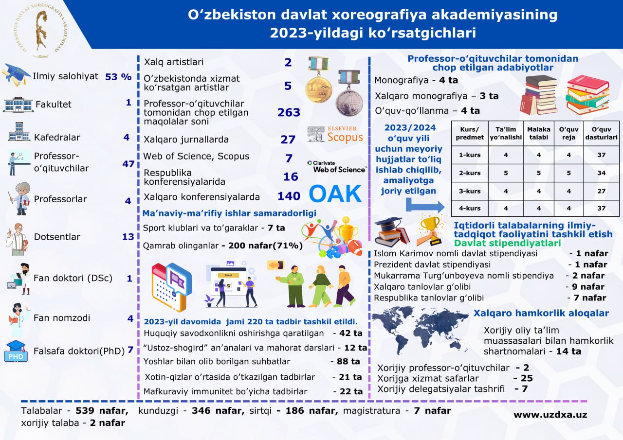 O’zbekiston davlat xoreografiya akademiyasining 2023-yildagi ko’rsatkichlari